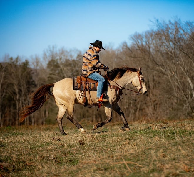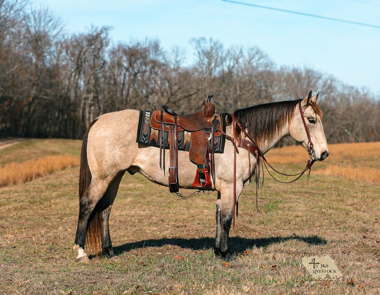 ⚜️ 𝓗𝓮𝓻𝓲𝓽𝓪𝓰𝓮 𝐖𝐢𝐧𝐭𝐞𝐫 𝓒𝓵𝓪𝓼𝓼𝓲𝓬⚜️ Happening now thru MONDAY | DECEMBER 29th - Available EXCLUSIVELY on HorseBid's website! For more details and to register visit: www.Horsebid.com CONSIGNOR CONTACT: J&S Livestock 931-242-7226 or 931-698-7159 LOCATION: Santa Fe, TN BREED: Quarter Horse REGISTERED: No REGISTERED NAME: Bruno COLOR: Buckskin HEIGHT: 15.1 AGE: 11 GENDER: Gelding Meet Bruno an absolutely gorgeous, gentle 11 yr old buckskin gelding standing 15.1hh, and the true definition of steady and kind. Bruno is very well mannered and it shows. He has an excellent temperament, plenty of training, ranch work experience, and the type of kind and gentle nature that’s truly hard to find! He is built correctly- big boned and built to last. He genuinely loves being around people and soaking up all the attention you could possibly give him. Bruno is a very confident ride. Whether you’re out on the trails, riding next to roaring farm machinery, working cattle, or riding through the busy downtown city traffic, he’ll always take care of you. He is use to ranch work, pushing cattle, pasture roping, checking fences, etc. As for the trails, if asked he will safely take you up or down some sketchy terrain with nothing but patience. He isn’t going to spook at wildlife, dogs, or even angry bulls out in the pasture. He handles it all calmly and sophisticatedly. Bruno is so honest and full of try. He will be just as confident solo as he is in a group, which makes for such a worry-free ride! Smooth, safe, comfortable, and responsive are a couple of the things that best describe Bruno’s qualities. He has a nice stop, comfortable steady trot, and smooth lope. On the ground Bruno is super easy to catch, hauls and loads like a pro, stands patiently to be groomed or bathed, and is also great for the farrier. He always has the best attitude- quiet, yet athletic and is always up for a challenge. If you are looking for the most kind-hearted gelding with actual real-life experience, then look no further than Bruno! Bruno is 100% sound and recently passed his PPE which is pictured above. For any further info please feel free to reach out at anytime- Bailey 931-242-7226 or JT 931-698-7159