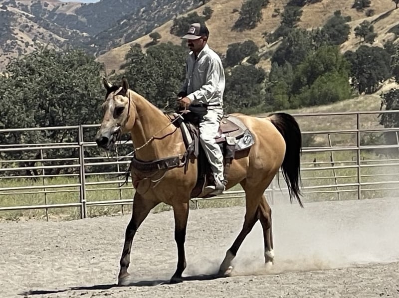 ONLINE AUCTION Place your bids at www.PlatinumEquineAuction.com Starting Bid $3500 Auction ends July 7th, 2024 Need a new saddle? Check out White Rock Saddles on our website or Facebook! Adobe is beautiful Buckskin with Dun markings. He is a gelding and is absolutely remarkable, not only with his beauty, but his loveable personality, willingness and capability. Adobe stands 15.1 hands and is 10 years old. He is the kind of horse that knows how to help you do a days work. He is great in the arena or out on the trails. He will literally go or climb up anything you ask him to. He loves trail riding and will lead, follow, or be in the middle of the pack. He has a good pace that covers ground and will get you to your destination safely. Adobe is good with other animals and all machinery. He is good with fly spray, vet, farrier tarps, and flags. Show him some love and he will be in your pocket. He will stand all day tied in the barn or in the trailer. If you’re looking for a horse that enjoys being ridden, this horse is for you. Adobe has a classy turn around, nice stop and easy lead departures. He has been used in the feedlot working cattle and out on the ranch for daily chores he’s good in the branding pen and will be easy for anyone to take out and enjoy. He is good outside crosses creeks, canyons and any other obstacles you may encounter. He is naturally broke, and extremely kind natured. Adobe has been started roping the sled and is adapting great. This horse is just a go to horse for anyone he rides correct and moves off leg cues and uses his hind end well. This is a horse you will look long and hard to find because they are not easy to let go of. He is current on worming and vaccinations and has zero bad habits. He is very eye catching and gets complimented everywhere he goes. Pleas contact Longhorn Ranch Dina 831-537-1915 Located in Paicines, CA. ONLINE AUCTION Place your bids at www.PlatinumEquineAuction.com Starting Bid $3500 Auction ends July 7th, 2024 Need a new saddle? Check out White Rock Saddles on our website or Facebook!