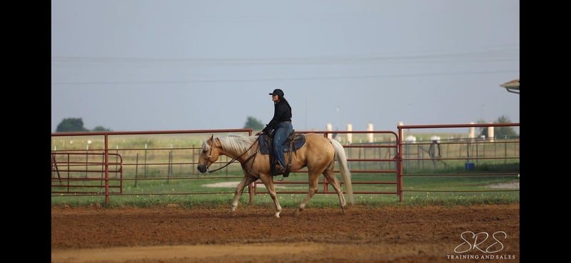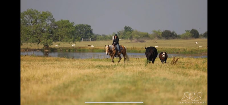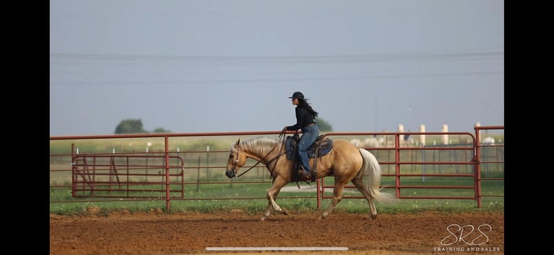ONLINE AUCTION Place your bids at www.PlatinumEquineAuction.com Starting Bid $3500 Auction ends June 23rd, 2024 Need a new saddle? Check out White Rock Saddles on our website or Facebook! Admiral Lees Poco Doc 139 is a 2014 Registered AQHA gelding. Admiral stands at 15.1 hands with a stocky build and stunning Palomino color. Admiral’s personality is exactly the reason so many people prefer geldings and why he was given his name, he will happily do whatever is asked of him and work his heart out for you. Admiral is a seasoned veteran in the arena and out on the trail, with many miles under saddle. He will walk, trot, lope with his head low on a loose rein. He neck reins with ease, is soft in his mouth, and moves off leg pressure with ease. He has an excellent rocking horse lope thats comfortable and easy to sit. Admiral will confidently take you on trails, help sort and gather cattle, and will surely be an eye catcher in the arena. He will happily go out in a group or alone without complaint. I honestly don’t have enough good things to say about this horse, he has been my go too when I’ve needed to gather cattle, pony colts, or just need a horse to check fences. He will stand tied so nicely to be groomed, saddled, and bathed. He loads and unloads on the trailer with ease. He is happy in a stall or outside by himself or with other horses. Admiral has no vices or bad habits that I’ve come across and is a gentleman on the ground and in the saddle. He has recently been seen by our vet, farrier, dentist, and chiropractor and was an outstanding citizen for all. This gelding has definitely become a favorite at my barn and not just for his pretty looks, he’s gentle as can be and so willing to please you, he will make a great addition to anyone’s barn. Please call Sydney with SRS Training and Sales 518-935-8282. Admiral is located in Granbury, TX. ONLINE AUCTION Place your bids at www.PlatinumEquineAuction.com Starting Bid $3500 Auction ends June 23rd, 2024 Need a new saddle? Check out White Rock Saddles on our website or Facebook!