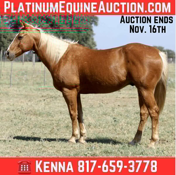 ONLINE AUCTION Place your bids at www.PlatinumEquineAuction.com Starting Bid $3500 Auction ends November 16th, 2025 Need a new saddle? Check out White Rock Saddles on our website or Facebook Meet Titan, a 12-year-old palomino gelding standing 15.1 hands tall and every bit as handsome as he is fun to ride. He’s the kind of horse that makes you want to saddle up and go, whether it’s for a relaxing evening ride or a full day out on the trails. Out on the trails, Titan really shines. He’s confident, surefooted, and happy to lead or follow. He handles new country with ease, crosses obstacles willingly, and rides out alone or in a group. He’s the type you can trust to take care of you while still giving you that fun, forward ride that makes every trip enjoyable. Titan is a well-rounded, versatile gelding with plenty of life in him. In the arena, he rides around soft and responsive. He’s been rode English as well and makes it super fun! If you’re looking for a good-minded, flashy gelding who’s safe, reliable, and fun, Titan is the total package. He’s a true all-around partner with plenty of heart and the kind of looks that will turn heads wherever he goes. We are located in Lipan Texas but have reputable haulers that go all over the country, including Hawaii and Canada. Give me a call or text and I’d be happy to answer any questions! Contact Makenna Hartzell 817-659-3778 with any questions. ONLINE AUCTION Place your bids at www.PlatinumEquineAuction.com Starting Bid $3500 Auction ends November 16th, 2025 Need a new saddle? Check out White Rock Saddles on our website or Facebook
