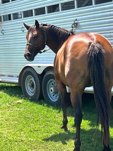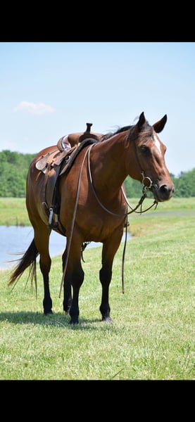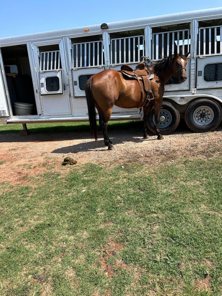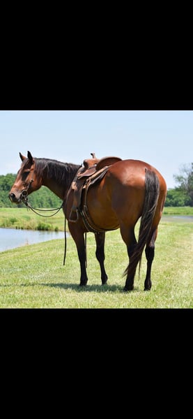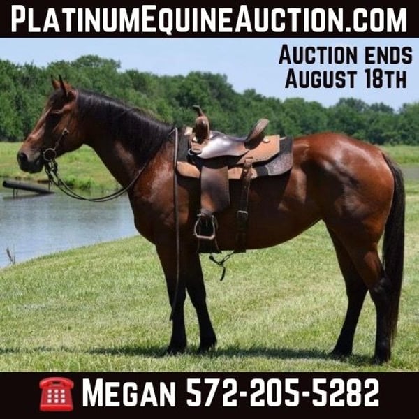 ONLINE AUCTION Place your bids at www.PlatinumEquineAuction.com Starting Bid $3500 Auction ends August 18th, 2024 Need a new saddle? Check out White Rock Saddles on our website or Facebook! Bertha! As we affectionately call this gorgeous girl is a 10YR old draft cross . The sweetest girl on the block! Is a outstanding kids confidence builder! Has been there done that. We use her in our race horse program to pony at the track. She handles all the commotion on race day like a saint! She has shagged bulls at rodeos doctored wheat cattle and is a bomb proof trail mount. Very comfortable to ride with the smoothest trot . She is very forgiving with kids and a huge babysitter! Will pack them around all day and you never have to worry! She’s a big girl at 16.1. 1350 lbs so can handle a larger man as well. Moves off leg pressure and has some fancy buttons if needed . Bertha is such a pleasure to be around and own loves sweet tea and Gatorade easy to maintain! She stays fat on air! For more info contact JDT Ranch Megan 572-205-5282. Located in Guthrie, OK. ONLINE AUCTION Place your bids at www.PlatinumEquineAuction.com Starting Bid $3500 Auction ends August 18th, 2024 Need a new saddle? Check out White Rock Saddles on our website or Facebook!
