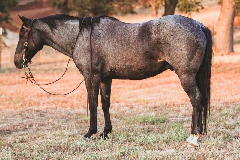 ONLINE AUCTION Place your bids at www.PlatinumEquineAuction.com Starting Bid $3500 Auction ends July 7th, 2024 Need a new saddle? Check out White Rock Saddles on our website or Facebook! Do you want the ultimate trail partner ? Maybe you do obstacle challenges ? What better than a great horse with the LOOKS to go with it! Aero is a 11yo grade blue roan gelding. Standing 14.3 hh and thick! Aero is the best adventure buddy. He goes thru anything and everything. He’s sure footed. Travels with a low headset and perfect pace. Aero has been hauled out extensively. Get on and go. No need to lunge. Saddles and bridles with ease. Stands tied. Loads great. Hauls quiet. Aero has been exposed to just about everything. He goes over bridges, crosses water, tarps, tires, noodles, drags logs, used to dogs, cars, tractors, dirt bikes, carries a flag you name it. This horse has no buck bolt rear. He’s true and honest. Bathes with ease, good in a stall. Easy keeper. I’ve yet to find anything that spooks this guy. He’s got a very calm demeanor. Currently barefoot with good feet. He does have a nice movement. He will pick up his leads in the arena, stops backs up, turns around, however trails are his gig. If you want something you can go crack a beer (or soda) open and hit the trails or beach with your friends he’s the one! I’ve enjoyed having aero in my barn and I’m sure you will to!! Please feel free to contact me with any questions. Breeanna Frazier 925-783-8655 located in Valley Springs, CA. ONLINE AUCTION Place your bids at www.PlatinumEquineAuction.com Starting Bid $3500 Auction ends July 7th, 2024 Need a new saddle? Check out White Rock Saddles on our website or Facebook!