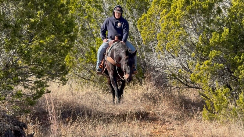 ♦️𝐍𝐄𝐖 𝐘𝐄𝐀𝐑'𝐒 𝑬𝒙𝒕𝒓𝒂𝒗𝒂𝒈𝒂𝒏𝒛𝒂♦️ Happening now thru MONDAY | JANUARY 12th - Available EXCLUSIVELY on HorseBid's website! For more details and to register visit: www.Horsebid.com CONSIGNOR CONTACT: M$ Performance Horses & Ponies LLC 661-817-9120 LOCATION: Stephenville, TX BREED: QH REGISTERED: No REGISTERED NAME: Dollar COLOR: Bay Roan HEIGHT: 15.1 AGE: 13 GENDER: Gelding Tried, Seasoned, and True — Meet Dollar! Dollar is a 13-year-old bay roan gelding standing a solid 15.1 hands tall, and he is every bit the seasoned veteran he looks to be. This is the kind of gelding you can throw absolutely any job at and know he’ll step up, stay steady, and get it done right. Dollar is a tried-and-true ranch horse who has been used extensively outside for every ranch chore you can think of. He knows what a long day’s work is, and all those miles are exactly why he’s the reliable, confident, and rock-solid mount he is today. There is truly nothing you’re going to show this gelding that he hasn’t already seen. In the arena, he’s just as impressive — he’s got an easy, honest walk, trot, and lope, and he is incredibly user-friendly. He would shine in a lesson program thanks to his steady mind and willing attitude. Out on the trails, he’s point-and-go simple. Steep mountains, bridges, water crossings, wildlife — Dollar handles it all with a seasoned, levelheaded confidence. His first trip to the Fort Worth Stockyards was no different. He walked through the crowds, lights, noise, and chaos like he’d done it a thousand times. Nothing shakes this gelding. Dollar is the kind that’s hard to find: exceptional minded, experienced, trustworthy, and ready for absolutely anything. Whether you want to head back to ranch country, explore new trails, or add a safe, dependable gelding to the family, Dollar is the one everyone will enjoy.