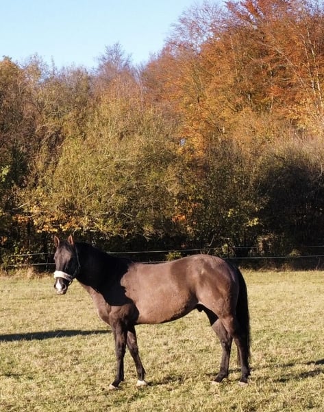 Aufgrund von Reitsportaufgabe verkaufen wir "Lenibert" nur in allerbeste Hände. Olena ist Freizeit geritten und liebt das Gelände, wo er sich sehr souverän zeigt. Er hat Nerven aus Stahl und ist nur schwer aus der Ruhe zu bringen. Olena ist ein charakterstarker Wallach, der fair und konsequent behandelt werden möchte. Für "seinen" Besitzer gibt er alles. In seiner Abstammung findet man Namen wie WEE LENAS JAC, POCO KING CHARRO, Doc Olena, Poco Bueno. 5 Pana N/N. Er ist ein Foundation Quater wo  das Solide und Altbewährte erhalten bleibt. Foundation Quarter sind von ihrer Art und ihrem Äusseren sowie ihre Eigenschaften einfach einzigartig. Sie sehen so aus, wie man sich ein Quarter Horse vorstellt, und sie verfügen über die Eigenschaften, auf die man großen Wert legt: Ausgeglichenheit, Coolness, Leistungsbereitschaft, Ehrlichkeit, ein solides Fundament, starke Bemuskelung - man könnte hier noch gut eine Seite schreiben, Foundation Quarters muss man ERLEBEN.