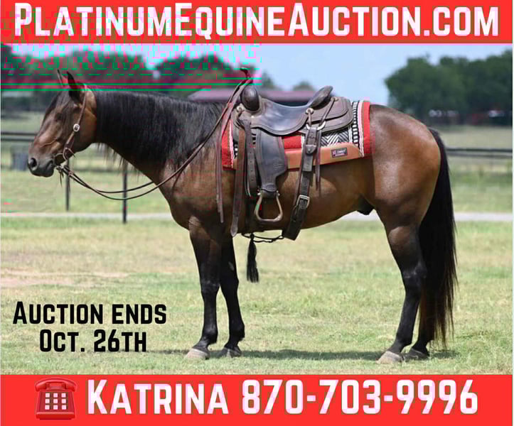 ONLINE AUCTION Place your bids at www.PlatinumEquineAuction.com Starting Bid $3500 Auction ends October 26th, 2025 Need a new saddle? Check out White Rock Saddles on our website or Facebook Baloo is a gorgeous, grade, 12 year old, bay gelding that stands a stout 15 hands tall. He’s not the horse for you if you’re looking for one that has all the extra buttons or the fancy handle. This one is just one that wants to go slow and at his leisure. He rides out on the backroads, down the trails, around the home place and through town. He tacks up quietly each and every time you go to ride. He is mounting block broke. He is great around other horses, dogs, cattle and he is broke to traffic, the sxs and other farm equipment. He tolerates any and all obstacles that are thrown his way whether it be logs, tarps, culverts, or bodies of water. He loads/unloads super. He has a good handle about him. Baloo is a total ham for all the attention and the lovings he can get. You can catch and halter him anywhere he stands and he will be the first to greet you when you step through the gate. He has ZERO buck or bolt about him. He bathes and stalls great. He is an extremely easy keeper. He’s great with his feet and stands for the farrier! You can ride him anywhere in a group of other riders! Baloo has a clean PPE on file for anyone who would like to see if just text us for a copy. Please contact us to come meet Baloo and try him out!!! For more info contact Katrina Garner 870-703-9996. Located in Arkadelphia, AR. ONLINE AUCTION Place your bids at www.PlatinumEquineAuction.com Starting Bid $3500 Auction ends October 26th, 2025 Need a new saddle? Check out White Rock Saddles on our website or Facebook