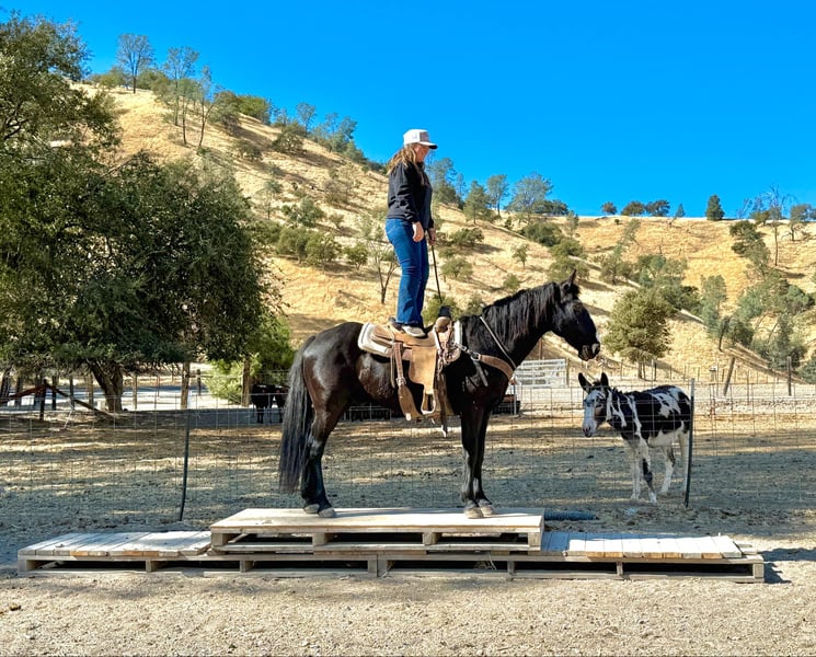 ONLINE AUCTION Place your bids at www.PlatinumEquineAuction.com Starting Bid $3500 Auction ends November 17th, 2024 Need a new saddle? Check out White Rock Saddles on our website or Facebook! Garbanzo is an 11 year old, 15HH grade black quarter horse gelding. He is a sweet heart horse that is safe for anyone able to climb on his back. Garbanzo is a great mid-paced gelding who is so fun to ride in and out of the arena. This boy has been rode all over the different country sides. Through high redwood forests, busy city streets, and steep mountain ranges he’s a saint through all of it! Garbanzo is very sure footed, knows how to place himself steadily, and aware of his surroundings. He travels through water, brush, rocks, and logs effortlessly. He’s seen wildlife, pedestrians and vehicles, nothing seems to bother him! In the arena he is smooth around the pen, neck reins softly, moves off leg pressure and has a great stop. He always keeps a nice even pace and is just a joy to ride anytime. He can be left off and not miss a beat. He will be the same horse you pull out of his pen everyday. Garbanzo has no buck, spook or bolt, making him trustworthy and dependable. He ties, bathes, and stands quietly for the farrier. Loads in any trailer without hesitation, can be stalled or pastured. Garbanzo is a fantastic, safe gentle boy for the entire family! He is a finished, sane trail horse, or also has the potential for other things, like ranch versatility, lesson programs, trail classes, etc. his possibilities are endless! For more information or to come see him for yourself please contact Cheyenne Rey 831-537-8746. He is located in Bitterwater, CA. ONLINE AUCTION Place your bids at www.PlatinumEquineAuction.com Starting Bid $3500 Auction ends November 17th, 2024 Need a new saddle? Check out White Rock Saddles on our website or Facebook!