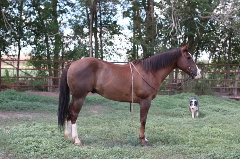 ENCHÈRE EN LIGNE Faites vos offres sur www.PlatinumEquineAuction.com Offre de départ 3500 $ La vente aux enchères se termine le 20 juillet 2025 Besoin d'une nouvelle selle ? Consultez White Rock Saddles sur notre site web ou Facebook 33 est le cheval polyvalent par excellence ! C'est un véritable gentleman, un cheval de famille fiable et sûr. 33 est un voyageur extrêmement agréable ! Il a été monté en randonnée et utilisé dans les ranchs au Texas occidental. Il est aussi solide que possible. C'est un cheval de travail très fiable qui accomplira le travail d'un cowboy ou sera un cheval de famille pour une balade tranquille en soirée. 33 mesure 1,50 m au garrot, il a 12 ans et possède une magnifique couleur chocolat foncé. C'est un véritable saint ! Il a une personnalité qui conviendra à tout niveau de cavalier, que vous souhaitiez aller lentement ou rapidement, trotter lentement ou rapidement, il a la vitesse que vous désirez et prendra soin de son cavalier. C'est le cheval que nous sortons pour les enfants ou lorsque nos amis citadins viennent monter, il veut être votre ami. Nous l'avons utilisé intensivement au ranch pour rassembler les vaches et les conduire d'un pâturage à l'autre ou vérifier les clôtures. C'est aussi un excellent cheval de tête, il a ropé beaucoup de bétail dans et hors de l'arène. Il est bon dans les box et surveillera vraiment une vache, il sera fort à la corne et accomplira le travail. Il connaît ses départs, il fera de grands cercles jolis. Il a été autour des barils, des drapeaux, des bâches, de la circulation, il est absolument sûr pour tout niveau de cavalier, il sera sûr tous les jours de la semaine et 100 % fiable. Il est facile à ferrer, à seller, à baigner, à charger et à transporter sans problèmes. Il sera droit de ses membres, sans bosses ni imperfections. Si vous cherchez votre prochain cheval de famille/enfant, 33 est votre homme, ne manquez pas ce joyau. Situé à El Paso, TX. Contactez Lauren Lara au 915-474-5453 pour toute question. ENCHÈRE EN LIGNE Faites vos offres sur www.PlatinumEquineAuction.com Offre de départ 3500 $ La vente aux enchères se termine le 20 juillet 2025 Besoin d'une nouvelle selle ? Consultez White Rock Saddles sur notre site web ou Facebook