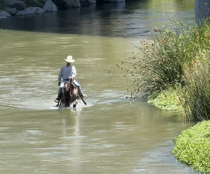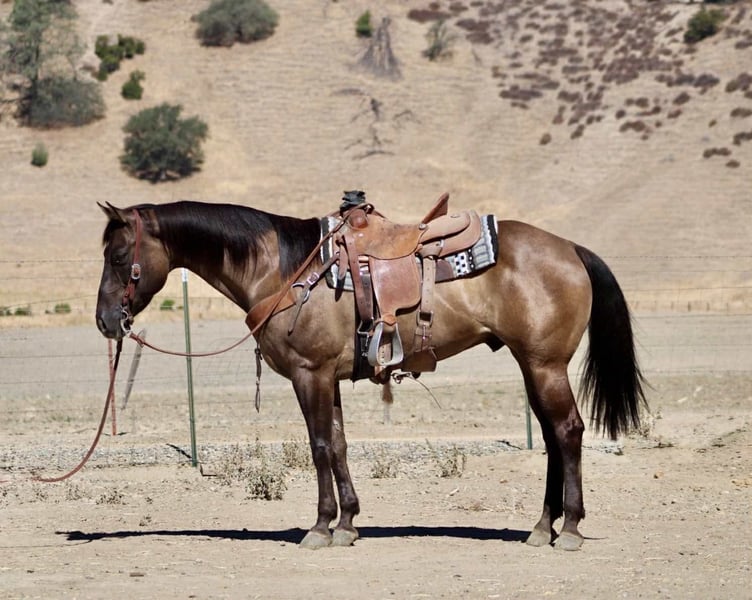 ONLINE AUCTION Place your bids at www.PlatinumEquineAuction.com Starting Bid $3500 Auction ends August 17th, 2025 Need a new saddle? Check out White Rock Saddles on our website or Facebook 5 Star – The Total Package, Wrapped in Grulla Gold! If you’re after a horse that turns heads and gets the job done, meet 5 Star—a striking 12-year-old, 15-hand grulla gelding who’s got the brains, the buttons, and the beauty to back it all up. This guy is smooth, stylish, and seriously broke. He’s the kind of horse that rides like a little reiner but has the heart and grit of a true ranch partner. He’s got a motor when you ask for it, but will rate down and go slow when it counts. Handy, fun, and classy as they come—5 Star is the ride you look forward to every single day. Need something broke? He spins, slides, rolls back, stops soft, and moves off your leg like he’s reading your mind. Obstacles? No problem. He’ll walk over bridges, through tires, tarps, pool noodles—you name it. He’s solid out on the trail, sure-footed in the rough stuff, and confident anywhere you point his pretty little ears. He’s been used on the ranch, sorted cows, opened gates, and put in a good day’s work. This gelding knows a job but also knows how to relax and enjoy the ride. He’s the kind that makes experienced riders grin and gives less confident ones the peace of mind to sit deep and trust. And let’s talk looks—because wow. That grulla coat, those tiger-striped legs, the kind eye, and a build that says “athlete” without sacrificing calm or class. He’s got presence in the arena, poise on the trail, and polish in every step. Easy to catch, saddle, bridle, and haul—he’s a gentleman for the farrier, stands tied, and gets along well with other horses. If you want a broke, beautiful gelding that’s fun to ride and ready for anything—5 Star is ready to shine for you. Located in Paicines, CA? Contact Dina at Longhorn Ranch: 831-537-1915 to come meet this rare gem! ONLINE AUCTION Place your bids at www.PlatinumEquineAuction.com Starting Bid $3500 Auction ends August 17th, 2025 Need a new saddle? Check out White Rock Saddles on our website or Facebook
