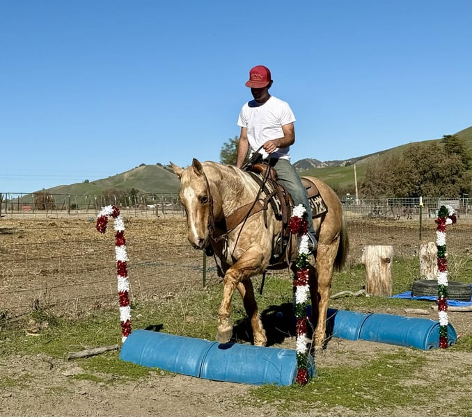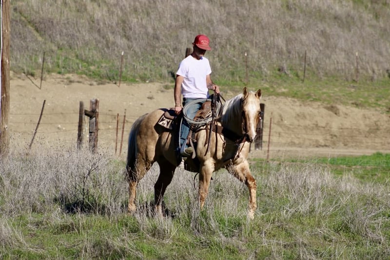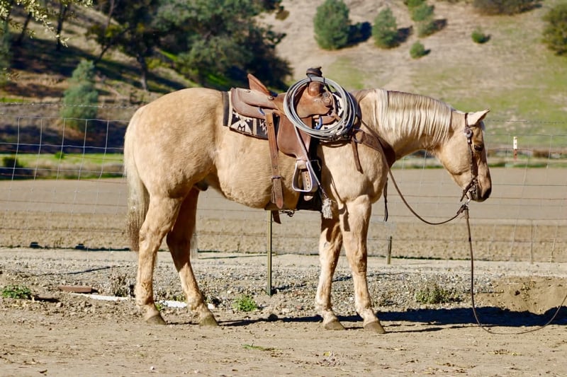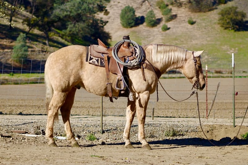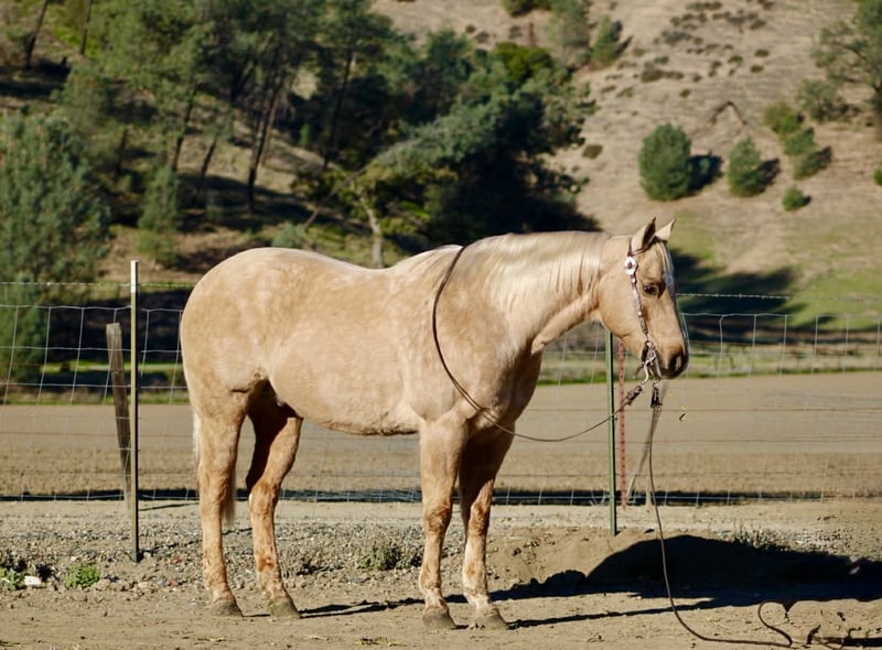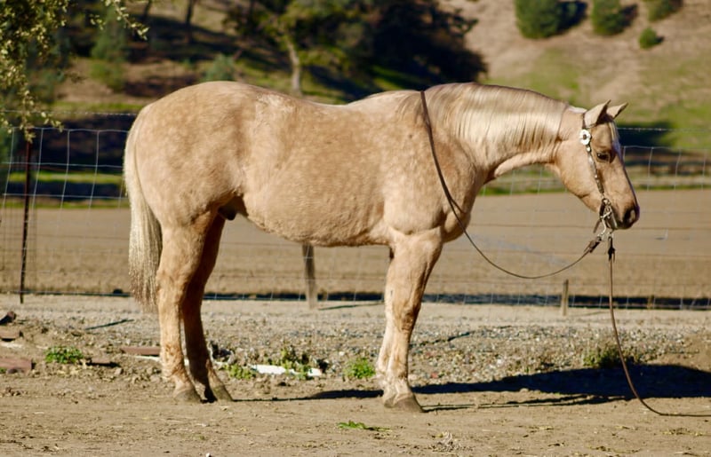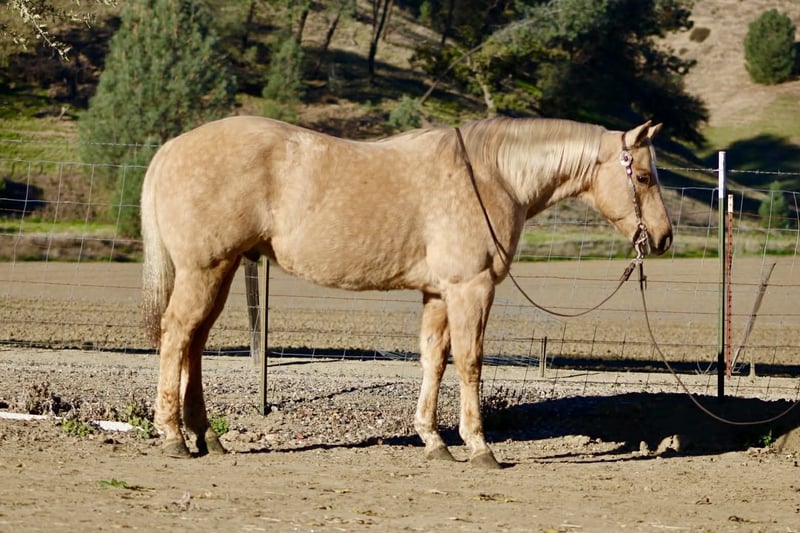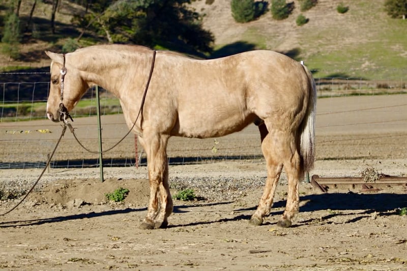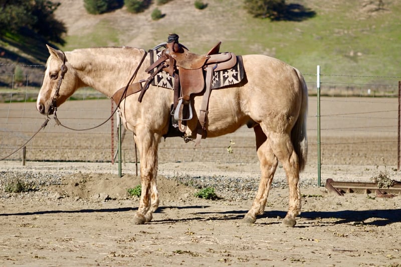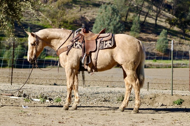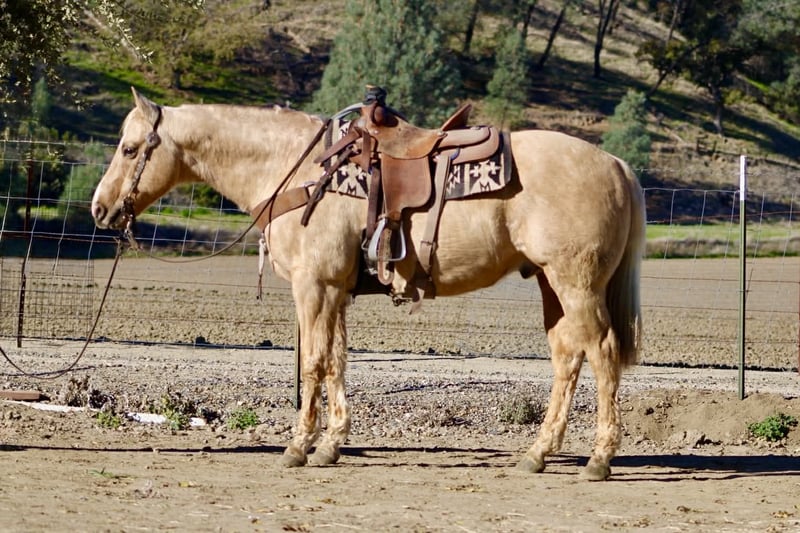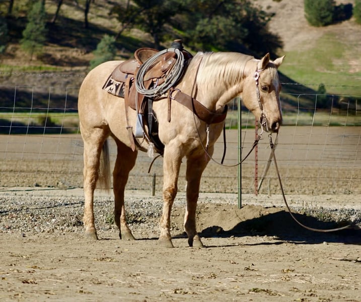 ONLINE AUCTION Place your bids at www.PlatinumEquineAuction.com Starting Bid $3500 Auction ends December 28th, 2025 Need a new saddle? Check out White Rock Saddles on our website or Facebook BEAMER — The Golden Gelding With a Good Mind and a Steady Way of Going 15 hands • 12 years old • Stout, correct, and uncomplicated Beamer is one of those geldings that’s simply easy to appreciate. He’s stout, correct-built, golden, and carries a soft, honest expression that tells you he’s the same horse every day. He’s a genuinely good-minded gelding that makes riding and owning him simple. He comes with real experience: ranch duties, arena riding, obstacle exposure, and plenty of trail miles. Beamer steps into every job with a calm, willing attitude. He doesn’t get bothered, doesn’t get pushy, and doesn’t make things harder than they need to be. Under saddle, Beamer gives you a smooth, straightforward ride. He picks up both leads, stops nice, backs straight, neck reins easily, and moves through his gaits with a natural, easy flow. He’s responsive without being touchy and steady without being dull—just a horse you can trust to stay honest and comfortable. Out on the trail, Beamer keeps that same steady character. He goes through water, over brush and logs, across rocks and hills, and handles all kinds of terrain with a sure, confident step. He has been around traffic, tractors, dogs, flags, tarps, bridges, tires, and obstacle setups, and he moves through it all with a level head. Whether you ride him every week or pull him out after time off, he stays consistent. Beamer is the type of gelding that suits a wide range of riders. Adults who want something dependable, beginners needing a steady partner, seasoned trail riders, or families who need one horse everyone can get along with—he fits them all. His gentle, easy-going nature makes him instantly comfortable to ride. On the ground, Beamer is pleasant and uncomplicated. He’s easy to catch, good for the farrier and vet, loads and unloads quietly, stands tied, and saddles and bridles without fuss. He has no vices and carries himself like a horse that’s been handled right. Beamer is in the prime of his life and brings a kind of dependable, quiet experience that’s getting harder to find. Sweet, steady, and simple to enjoy—he’s the type that becomes a barn favorite everywhere he goes. For questions or to schedule a visit, feel free to call. Longhorn Ranch — Paicines, California Dina 831-537-1915 Shipping available anywhere ONLINE AUCTION Place your bids at www.PlatinumEquineAuction.com Starting Bid $3500 Auction ends December 28th, 2025 Need a new saddle? Check out White Rock Saddles on our website or Facebook