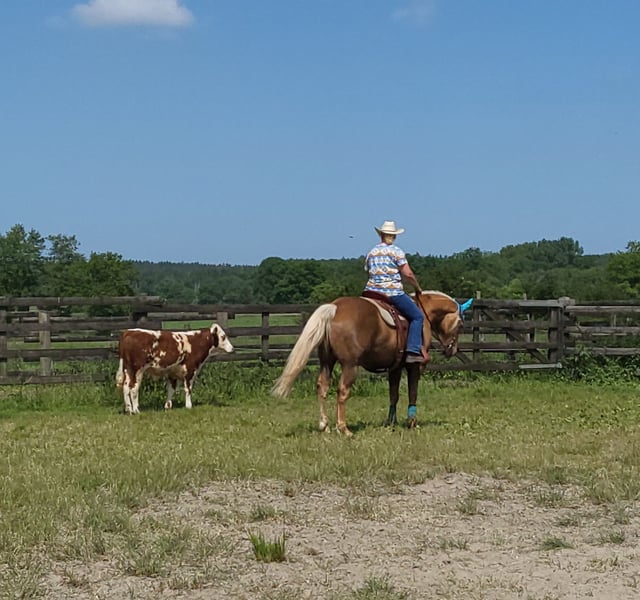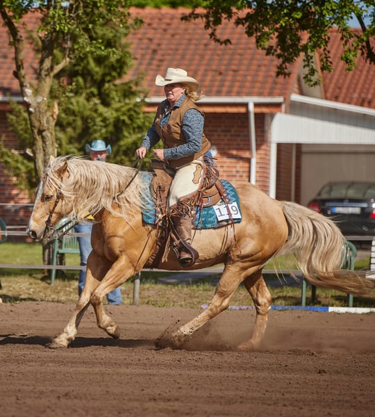 I am reluctantly selling my 13-year-old gelding due to lack of time. He started competing in the tournament scene at the age of 10, so he is still completely fresh. In this short time, he has achieved countless placements and victories in Ranch Riding, Western Ranch Rail, Trail, Ranch Trail, and Western Horsemanship (EWU LK 1/2). We have also been successful in the Netherlands, being two-time Dutch champions in Ranch Riding (LK 1+2) and two-time vice-champions in Trail and Ranch Trail. Nuke is versatile and has been exposed to cattle multiple times, enjoys speed rodeo, knows all the Extreme Trail obstacles, is naturally confident in the terrain, and is not afraid of anything. He is very solidly built, passed the veterinary examination with flying colors about 3 years ago, and has excellent hooves and very good teeth. There are no health restrictions; he is in perfect health! He is kept in a paddock but is also accustomed to a box and can handle hay and pasture 24/7. He is always calm at competitions, clinics, and on vacation. He can perform all maneuvers, although he hasn't been worked much on the stop as he doesn't have sliders. He can change leads in the air but can still be refined. No vices, rather high-ranking. He can definitely be ridden by children or returning riders, but he does not appreciate rough aids. He prefers to go in a bit or bosal. He enjoys groundwork/free work and wants to work. Unfortunately, we have too many horses, and the young ones need to be started under saddle, which is why he is being sold due to lack of time. It’s simply too much of a shame for him to just stand around!
