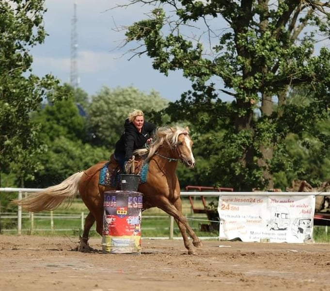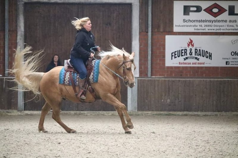 Sprzedam z ciężkim sercem z powodu braku czasu mojego 13-letniego wałacha. Zaczął startować w sporcie jeździeckim dopiero w wieku 10 lat, więc jest całkowicie niewyczerpany. W tym krótkim czasie zdobył niezliczone miejsca i zwycięstwa w Ranch Riding, Western Ranch Rail, Trail, Ranch Trail oraz Western Horsemanship (EWU LK 1/2). Również w Holandii odnosiliśmy sukcesy i jesteśmy dwukrotnymi mistrzami Holandii w Ranch Riding (LK 1+2) oraz dwukrotnymi wicemistrzami w Trail i Ranch Trail. Nuke jest wszechstronnie wykształcony, wielokrotnie pracował z bydłem, ma radość z Speed Rodeo, zna wszystkie przeszkody Extreme Trail, jest naturalnie pewny w terenie i nie boi się niczego. Jest bardzo stabilnie zbudowany, przeszedł AKU około 3 lata temu z wyróżnieniem i ma świetne kopyta oraz bardzo dobre zęby. Brak ograniczeń zdrowotnych, jest w doskonałej formie! Stoi w boksie otwartym, zna również boks, toleruje siano i trawę 24/7. Zawsze jest spokojny na zawodach, kursach i podczas wakacji. Zna wszystkie manewry, jednak nie był dalej pracowany nad zatrzymaniem, ponieważ nie ma sliderów. Zmienia nogi w locie, ale można to jeszcze udoskonalić. Nie ma złych nawyków, raczej jest dominujący. Może być jeżdżony przez dzieci lub osoby wracające do jazdy, ale nie lubi szorstkich pomocy. Najchętniej chodzi w wędzidle lub bosalu. Cieszy się z pracy na ziemi/wolnej pracy i chce pracować. Niestety, mamy zbyt wiele koni, a młodzież musi być wprowadzona w trening, dlatego sprzedaję z powodu braku czasu. To po prostu szkoda, żeby stał bezczynnie!