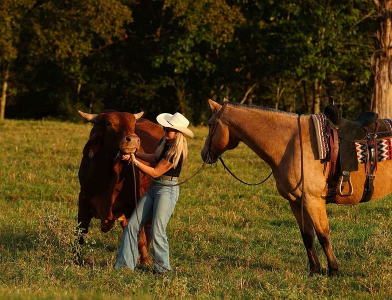 ♦️ DER AMERIKANISCHE FALLKLASSIKER ♦️ Findet jetzt bis MONTAG, 20. OKTOBER, statt – exklusiv auf der Website von HorseBid! Weitere Details und Anmeldung unter: www.Horsebid.com VERKAUFERKONTAKT: Lacey Wilf, 501-940-8704 STANDORT: Quitman, AR RASSE: Quarter Horse ZÜCHTUNG: Nicht registriert FARBE: Buckskin GRÖSSE: 16,2 hh ALTER: 12 Jahre GESCHLECHT: Wallach Dino ist ein auffälliger Buckskin-Wallach mit 16,2 hh, 12 Jahren, der durch seine Größe, Präsenz und kräftigen Knochen sofort ins Auge fällt. Er ist groß, sanft und absolut benutzerfreundlich – der Typ, der selbstbewusst auftritt und so zuverlässig ist, wie man es sich wünscht. Er trägt sich mit Selbstvertrauen und reitet sich so angenehm, wie es nur geht. Er ist schon an die Kopf- und Halsrichtung gewöhnt, geht problemlos an der Kordel, zieht kräftig am Horn, stellt sich gut und erzielt gute Scores – alles in ruhiger und gelassener Haltung. Auf der Ranch hat Dino viel echte Arbeit geleistet, beim Einfangen, Sortieren, Tierarztbesuchen und Kontrollieren von Rindern in großem Gelände. Auch im Verkaufsstall ist er ein erfahrener Veteran. Er fühlt sich in engen Gängen und lauten Ställen wohl, arbeitet an Toren, pennt alle Arten von Vieh, nimmt den schnellen Rhythmus, Echos und Trubel gelassen hin. Auf dem Trail ist er unkompliziert und der „Zeig-und-Geh“-Typ. Dino überquert Wasser, Brücken, Dickicht und unebenes Gelände ohne Zögern, ist sicher auf Felsen unterwegs und lässt sich alleine oder in der Gruppe problemlos führen. Er steht ruhig zum Aufsteigen, reitet neck reins, reagiert auf die Beine und trägt einen weichen, gelassenen Galopp, der lange Strecken angenehm macht. Am Boden ist er ebenso kooperativ – leicht zu fangen, satteln, bridlen, verladen, transportieren, baden und beschlagen. Er bleibt ruhig beim Anbinden und ist nach einer Pause genauso zuverlässig wie bei regelmäßigem Reiten. Das Beste: Dino passt zu fast jedem Reitniveau. Er ist ehrlich genug für einen vorsichtigen Anfänger, groß und bruchfest genug, um damit Geld zu verdienen, und freundlich genug, um Gästen ein vertrauensbildendes Erlebnis zu bieten. Dino hat einen liebevollen, umgänglichen Charakter, der jeden begeistert – er liebt Menschen, begrüßt dich am Tor mit sanftem Blick und strahlt eine ruhige, freundliche Präsenz aus, die ihn unwiderstehlich macht. Wenn Sie einen großen, eleganten Wallach suchen, der zuverlässig arbeitet und alles unkompliziert macht – im Reitstall, auf der Ranch oder auf dem Trail – dann ist Dino Ihr Pferd. Er meistert jede Aufgabe und lässt Sie dabei groß aussehen!