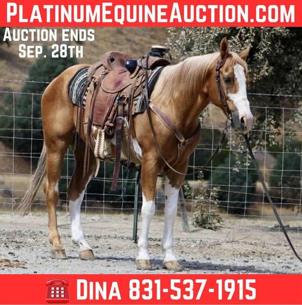 ONLINE AUCTION Place your bids at www.PlatinumEquineAuction.com Starting Bid $3500 Auction ends September 28th, 2025 Need a new saddle? Check out White Rock Saddles on our website or Facebook Meet Big Tony — a 13-year-old, 14.1 hand golden palomino paint gelding who has officially earned his title as Trail Horse Deluxe. He’s the kind that makes you relax the moment you swing a leg over, because you know he’s got everything handled. Tony is as broke and easy as they come. One-hand neck rein, soft lope, good stop, patient, forgiving — he’s the whole package. He’s simple, honest, and always the same no matter the day or the place. If you can steer a bicycle, you can ride Big Tony. His passport of experiences reads like an adventure catalog: parades, town traffic, rivers, bridges, brush, logs, tarps, pool noodles, cattle work, and every obstacle someone could dream up. None of it rattles him. He’ll carry the littlest rider or the greenest adult without batting an eye, always with his big kind heart leading the way. In the arena he’s just as straight forward and easy picks up leads stops and backs nicely. On the ground, Tony is just as deluxe. He ties, clips, bathes, hauls, and stands quiet for the farrier. He’s happy in a stall or pasture and greets you at the gate like an old friend who’s always glad to see you. Big Tony isn’t trying to be a fancy show horse. He’s better than that. He’s the dependable, steady, go-anywhere, do-anything gelding that families keep forever because life is just easier with him around. If you’ve been searching for a trustworthy partner to trail ride, or simply enjoy day in and day out, this is the guy. 📞 Contact Dina at Longhorn Ranch 831-537-1915 with any questions. Located in Paicines, CA. ONLINE AUCTION Place your bids at www.PlatinumEquineAuction.com Starting Bid $3500 Auction ends September 28th, 2025 Need a new saddle? Check out White Rock Saddles on our website or Facebook