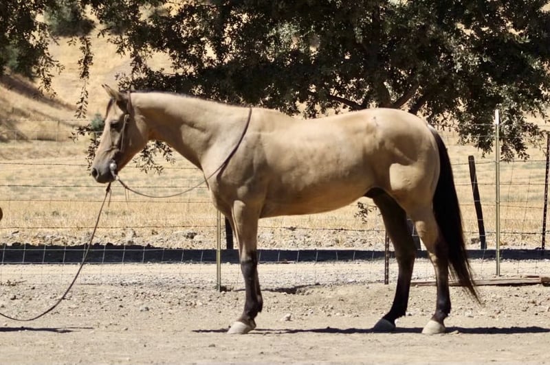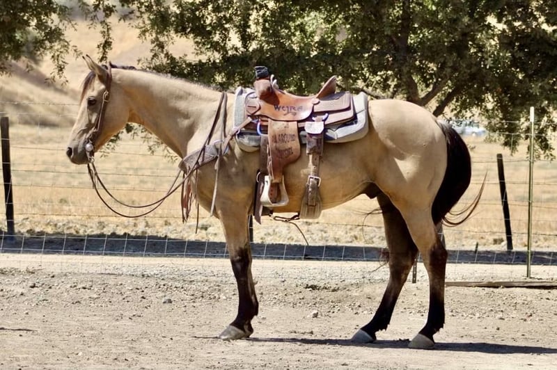 ONLINE AUCTION Place your bids at www.PlatinumEquineAuction.com Starting Bid $3500 Auction ends October 6th, 2024 Need a new saddle? Check out White Rock Saddles on our website or Facebook! Dylan is a delightful buckskin gelding who’s not just a horse but a companion! If you are looking for the perfect trail mount look no further. At 12 years old and standing at a charming 14.2 hands, he embodies everything horse lovers dream of gentle enough for anyone to ride yet possessing that spark when you want him to shine. Dylan who transitions smoothly in all his gaits and always rides collected and soft. With a subtle yield to leg pressure, Dylan rounds out beautifully while maintaining an unshakable calm around various distractions be it balls, tarps, flags, or even noisy tractors; nothing fazes this steady guy! Dylan is super in heavy traffic and has been ridden in late hours in fuel stations with lights and cars speeding by and he handled it like a champ. Whether you’re gathering cattle or doing ranch chores, Dylan is super cowey and ready for action. He’s been there with a-variety of levels on board too always be reliable and attentive in every situation they encounter together. On the trail or amidst wildlife adventures, he confidently crosses creeks and navigates downed trees without breaking a sweat; climbing mountains is just another day at the office for him! Plus: he’s as easy-going as can be during grooming sessions with the farrier clipping, tying up nicely, bathing it’s all part of his charm. Loading into trailers? A breeze! Dylan truly epitomizes what it means to be both versatile and dependable a friend’s best-kept secret in equine form. Please contact Longhorn Ranch Dina 831-537-1915 located Paicines, CA. ONLINE AUCTION Place your bids at www.PlatinumEquineAuction.com Starting Bid $3500 Auction ends October 6th, 2024 Need a new saddle? Check out White Rock Saddles on our website or Facebook!
