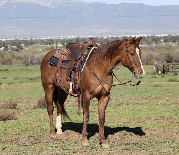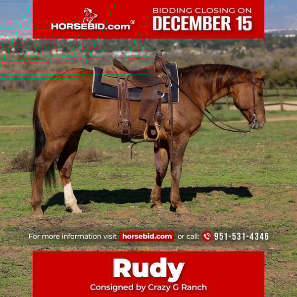 🎄𝐓𝐇𝐄 𝑯𝒐𝒍𝒊𝒅𝒂𝒚 𝐂𝐋𝐀𝐒𝐒𝐈𝐂🎄 Happening now thru MONDAY | DECEMBER 15th - Available EXCLUSIVELY on HorseBid's website! For more details and to register visit: www.Horsebid.com CONSIGNOR CONTACT: Crazy G Ranch 951-531-4346 LOCATION: Norco CA BREED: Quarter horse REGISTERED: No COLOR: Dunn HEIGHT: 14.3 AGE: 13 GENDER: Gelding Rudy is a go to horse in our barn! Rudy has been used for many disciplines for all level of riders! Rudy has been used for JR rodeos, he is finished on the barrel pattern and will run Poles! Rudy has been used out on the ranch gathering, and branding calves! He has no spook, is sure footed, and is solid and confident on the ranch and trails! Rudy doesn’t get hot and will ride solo or in a group setting! Rudy has been ridden in busy street trails and isn’t afraid of barking dogs, flying bags, tarps and trash trucks! Rudy is very well broke in the arena, will lope on a nice loose rein and will stay at that slow lope! He is by far one of the smoothest horses I have ever ridden! If you have back problems and need a smooth horse Rudy is your guy! Rudy has been ridden in parades, drill teams and has done a tone of cow sorting! Rudy can be left to sit and you can cinch him up and go without him getting fresh or have any funny business! Rudy sells 100% sound, he wears shoes all the way around and is great for the farrier! Rudy has a puppy dog personality and loves people! He is easy to catch, groom and saddle!