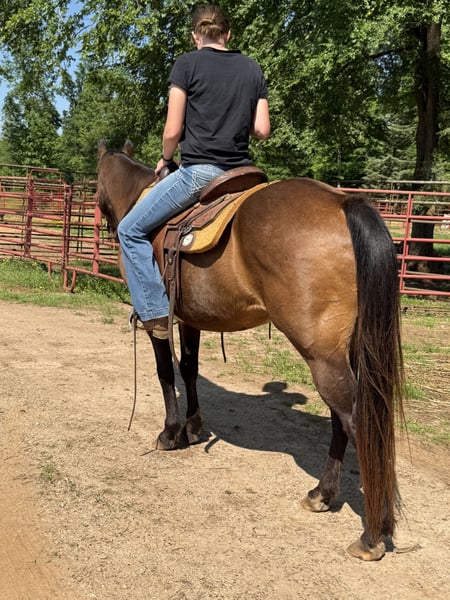 "VERFÜGBAR BEI DER ONLINE-PFERDEAUKTION UNTER www DOT MagicHorseAuction DOT com DIE BIETEN SIND JETZT OFFEN BIS DIENSTAG | 13. MAI - SOFORTKAUF MÖGLICH! *Der endgültige Preis wird auf der Auktionsseite festgelegt* KONTAKTINFORMATIONEN DES EINLIEFERERS: Southern Performance Horses 706-963-9251 STANDORT: Carnesville, GA Todd Jeder braucht einen Wallach wie Todd in seinem Stall, dieser Junge ist unbezahlbar! Todd ist sanft, süß und macht Spaß. Todd ist ein 13-jähriger Quarter Horse Wallach, der 14,3 Hände groß ist. Die Trails mit Todd sind ein Vergnügen, er ist ein Trailblazer, egal ob alleine oder in einer Gruppe, er folgt oder führt die Herde oder bleibt hinten bei der langsameren Gruppe. Wir haben Todd über Brücken, durch Wasser, über Baumstämme, auf Reifen und an gruseligen Hindernissen vorbeigeführt. Spielen in der Arena macht mit Todd Spaß, er wird englisch, western und ohne Sattel geritten! Er könnte grundlegende w/t/c Unterrichtsstunden geben oder gemütlich über Hindernisse spazieren. Todd lässt sich von Bussen (siehe Video), Autos, Fahrrädern, Rehen, Vögeln, die aus hohem Gras aufsteigen, Fahnen, bellenden Hunden nicht aus der Ruhe bringen und er ist ausgezeichnet mit hupenden Fahrzeugen, selbst wenn er direkt neben einer lauten Luftdruckhupe steht, blinzelt er nicht. Todd ist ausgezeichnet in den Kreuzbandzügen und steht toll zum Putzen, Satteln, Baden, für den Hufschmied und er kann auch problemlos an einem Anhänger oder einer Picketline angebunden werden. Todd lädt sich jedes Mal ruhig ein und aus. Dieser Junge hat sowohl barfuß als auch mit Eisen gelebt und macht in beiden Fällen hervorragende Fortschritte! Machen Sie Todd zu Ihrem nächsten spaßigen und süßen Hindernis-, 4H-, Trail- oder einfach nur einem grundlegenden Freizeitpferd, das super vielseitig ist und neue Situationen beim Reiten nicht scheut. Todd kann Witze ohne Probleme ertragen, er kommt großartig alleine oder mit anderen aus und respektiert alle Zäune! Dieser süße Junge hat schon viele Spaßshows, Trails in Staatsparks, Wagenzüge und Freizeitritte im Hinterhof erlebt und egal an welchem Ort oder in welcher Situation ist er bereit für einen sicheren, spaßigen Ritt. Zögern Sie nicht, uns bezüglich des Versands oder bei weiteren Fragen zu kontaktieren. Wir sind hier, um alle Fragen zu beantworten, um sicherzustellen, dass er die perfekte Ergänzung für Ihre Situation ist. Wir haben auch viele Spediteure, die wir empfehlen können, um Todd zu seiner neuen Familie zu bringen!"