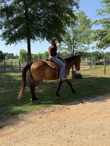 "AVAILABLE ON ONLINE HORSE AUCTION AT www DOT MagicHorseAuction DOT com BIDDING OPEN NOW thru TUESDAY | MAY 13th - BUY IT NOW AVAILABLE! *Final price will be determined on auction site* CONSIGNOR CONTACT INFO: Southern Performance Horses 706-963-9251 LOCATION: Carnesville, GA Todd Everyone needs a gelding like Todd in their barn this boy is priceless! Todd is gentle, sweet and fun. Todd is a 13 year old Quarter Horse gelding standing 14.3 hands. Trails are a blast with Todd he’s a trail blazer alone or in a group he will follow or lead the herd or stay in the back with the slower group. We have taken Todd over bridges, through water, over logs, on top of tires and scary obstacles. Playing in the arena Todd is fun he rides English, western and bareback! He could give basic w/t/c lessons or walk around leisurely over obstacles etc. Todd is not fazed by buses (see video), cars, bikes, deer, birds flying up out of high grass, flags, barking dogs and he is excellent with horns blowing even standing right next to a loud air horn he doesn’t blink an eye. Todd is excellent in the cross ties and stands great for grooming, tacking up, bathing, farrier care and he will also tie to a trailer or picket line without problems. Todd loads and unloads quietly every time. This boy has lived barefoot and with shoes and he does excellent either way! Make Todd your next fun and sweet obstacle, 4H, trail or just a basic pleasure horse that is super versatile and doesn’t mind new situations while riding. Todd can take a joke without issues, he turns out great alone or with others and respects all fencing! This sweet boy has seen his fair share of fun shows, state parks trail riding, wagon trains and back yard pleasure riding and no matter the location or situations he’s up for a safe fun ride. Feel free to reach out about shipping or with any further questions. We are here to answer any and all questions to make sure he’s the perfect fit for your situation. We also have many shippers we could recommend to help get Todd to his new family!