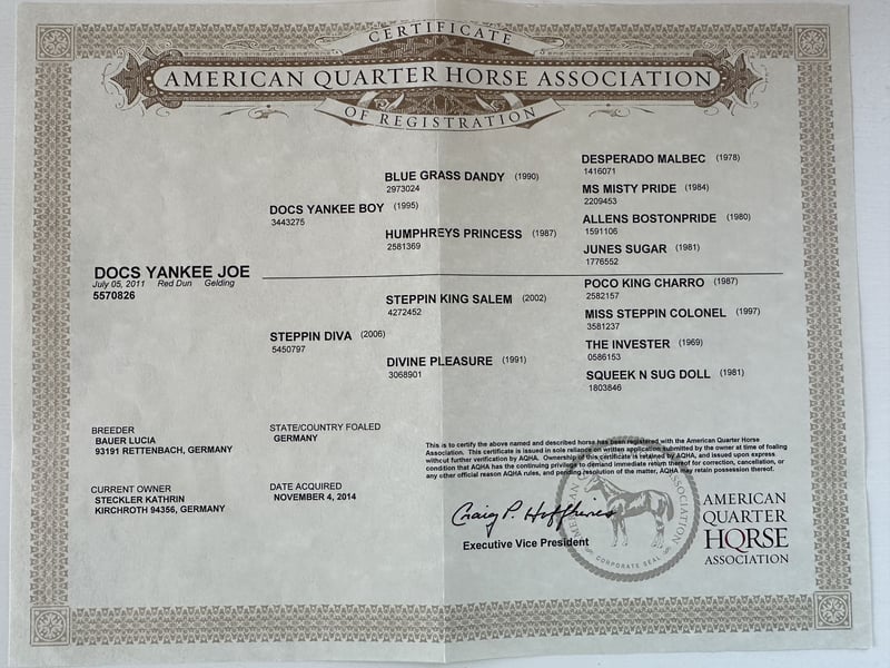 I am looking for a new, loving home for my Quarter Horse gelding "Yankee." This is not an urgent sale, and he will not be sold as a school horse. It is important to me that Yankee goes to experienced and empathetic hands. Profile * Name: Yankee * Breed: Quarter Horse * Gender: Gelding * Age: 14 years * Height: approx. 1.60 m * Papers: available, registered with the American Quarter Horse Association (AQHA) * Training: Reining * Health: healthy, coughs occasionally in winter, hooves are in good condition * Equipment: by arrangement * Location: near Darmstadt (Hesse) About Yankee: Yankee is a sensitive, good-natured gelding with a solid Reining education. I have primarily ridden him in the countryside over the past 5 years. He is very light to ride, loves groundwork, free work, and spending time with his person. Whoever connects with him will get a true heart horse that wants to please and impresses with his gentle nature. In the riding arena, he works well, demonstrates his training, enjoys learning, and likes to have fun. He is ideal for someone who wants to learn more about Western riding. He is not a beginner horse but needs an experienced, calm, and clear handler who can provide him with security. In the countryside, Yankee is well-behaved in the company of another horse. I do not recommend riding out alone with him, as he is a sensitive and somewhat spooky horse that can make quick turns. Important: * Serious inquiries only, please. * A fee of €50 will be charged for test rides, which will of course be deducted from the purchase price. Price expectation: €6,000 negotiable If you feel addressed and are looking for a (second) horse with which you can have fun, learn, and walk the path together – then I look forward to your message.