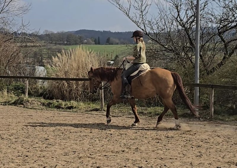 Ich suche für meinen Quarter Horse Wallach „Yankee“ ein neues, liebevolles Zuhause. Es ist kein Notverkauf und er wird auch nicht als Schulpferd verkauft. Wichtig ist mir, dass Yankee in erfahrene und einfühlsame Hände kommt. Steckbrief * Name: Yankee * Rasse: Quarter Horse * Geschlecht: Wallach * Alter: 14 Jahre * Stockmaß: ca. 1,49 m * Papiere: vorhanden, eingetragen bei der American Quarter Horse Association (AQHA) * Ausbildung: Reining * Gesundheit: gesund & robust, hustet im Winter ab und zu, Hufe gesund und gepflegt * Zubehör: nach Absprache * Standort: Nähe Darmstadt (Hessen) Zu Yankee: Yankee ist ein sensibler, gutmütiger Wallach mit einer fundierten Reining-Ausbildung. Ich habe ihn in den letzten 5 Jahren überwiegend im Gelände geritten. Er ist sehr fein zu reiten, liebt Bodenarbeit, Freiarbeit und gemeinsame Zeit mit seinem Menschen. Wer sich auf ihn einlässt, bekommt ein echtes Herzenspferd, das gefallen will und durch seine feine Art beeindruckt. Auf dem Reitplatz arbeitet er brav mit, zeigt dort seine Ausbildung, lernt auch gerne noch dazu und macht gern Quatsch mit. Er ist ideal für jemanden, der im Westernreiten dazulernen möchte. Er ist kein Anfängerpferd, sondern braucht eine erfahrene, ruhige und klare Bezugsperson, die ihm Sicherheit vermittelt. Im Gelände ist Yankee in Gesellschaft eines anderen Pferdes brav. Alleine empfehle ich keine Ausritte mit ihm, da er ein sensibles und tendenziell schreckhaftes Pferd ist, das schnelle Wendungen beherrscht. Wichtig: * Nur ernst gemeinte Anfragen bitte. * Für Proberitte werden 50 € berechnet, die bei einem Kauf selbstverständlich verrechnet werden. Preisvorstellung: 7500 € VB Wenn du dich angesprochen fühlst und ein (zweites) Pferd suchst, mit dem du Spaß haben, lernen und gemeinsam den Weg gehen kannst – dann freue ich mich auf deine Nachricht.