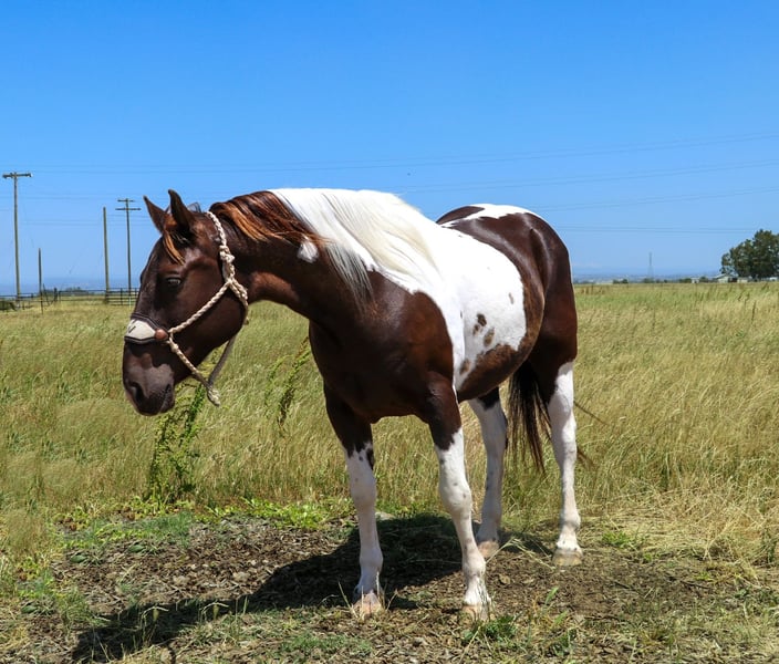 ONLINE AUCTION Place your bids at www.PlatinumEquineAuction.com Starting Bid $3500 Auction ends June 9th, 2024 Need a new saddle? Check out White Rock Saddles on our website or Facebook! Meet Badger: The Perfect Blend of Beauty and Brains! He is a grulla paint, 12 year old that stands 15.1 hands. Are you in search of a horse that combines stunning looks with an exceptional temperament? Look no further! Badger is a magnificent equine that will not only turn heads with his striking appearance but will also impress you with his intelligence and versatility. This remarkable horse has been a reliable partner in a variety of settings and is ready to bring joy and adventure to his new owner. Badger is an absolute gentleman on the trails. He is as sure-footed as they come, confidently navigating through any terrain you can imagine. Whether you’re traversing muddy paths, crossing creeks, splashing through ponds, or tackling rocky landscapes, Badger handles it all with ease. He goes up and down hills effortlessly, making him the perfect trail companion for any rider. Plus, he has a genuine love for playing in the water, making every trail ride an adventure. In the arena, Badger is a true expert. He knows his leads, has a fantastic stop, and offers a smooth, easy trot that makes riding a pleasure. Whether you’re practicing for a competition or just enjoying a leisurely ride, Badger’s responsiveness and skill make him an excellent partner. His familiarity with obstacles like tarps, smoke bombs, and flags means he remains calm and composed. Badger has been exposed to an array of environments and situations, making him incredibly adaptable. He’s accustomed to the hustle and bustle of heavy equipment, dogs, quads, dirt bikes, and bikes. Traffic, honking horns, and even the roar of semi-trucks do not phase him. Badger has been ridden through city streets and neighborhoods, calmly handling rushing cars, curious pedestrians, and kids playing basketball. His nature makes him an excellent choice for riders who want to explore both rural and urban settings. Badger has a special fondness for children and loves the attention they give him. He is a perfect gentleman around kids, making him an ideal family horse. His patient and gentle demeanor ensures that even the youngest riders can take him for a spin. He’s been used for lessons and handles them with grace. Badger is as easy-going as they come. His “in your pocket” personality means he loves to be around people and enjoys being loved on. He’s a joy to ride and be around, making every moment spent with him a pleasure. Whether you’re a seasoned rider or a novice, Badger’s sweet nature and cooperative spirit make him an ideal companion. He is also UTD on shoes, worming, shots and in shape and ready to hit those trails. He loads in a trailer with ease, stands tied, goes alone or in a group, stands to be saddled, bathed, fly sprayed, for farrier. Is great with other horses or alone , stall or pasture, he’s easy to catch as well. Badger is a rare find – a horse that combines beauty, brains, and an exceptional temperament. His versatility and reliability in a wide range of settings make him a standout choice for anyone looking for a truly special equine partner. Don’t miss the opportunity to make Badger a part of your life. Contact KW Ranch 530-852-2032 to meet this extraordinary horse we call Badger! ONLINE AUCTION Place your bids at www.PlatinumEquineAuction.com Starting Bid $3500 Auction ends June 9th, 2024 Need a new saddle? Check out White Rock Saddles on our website or Facebook!
