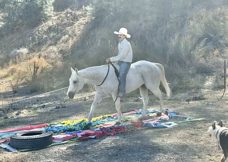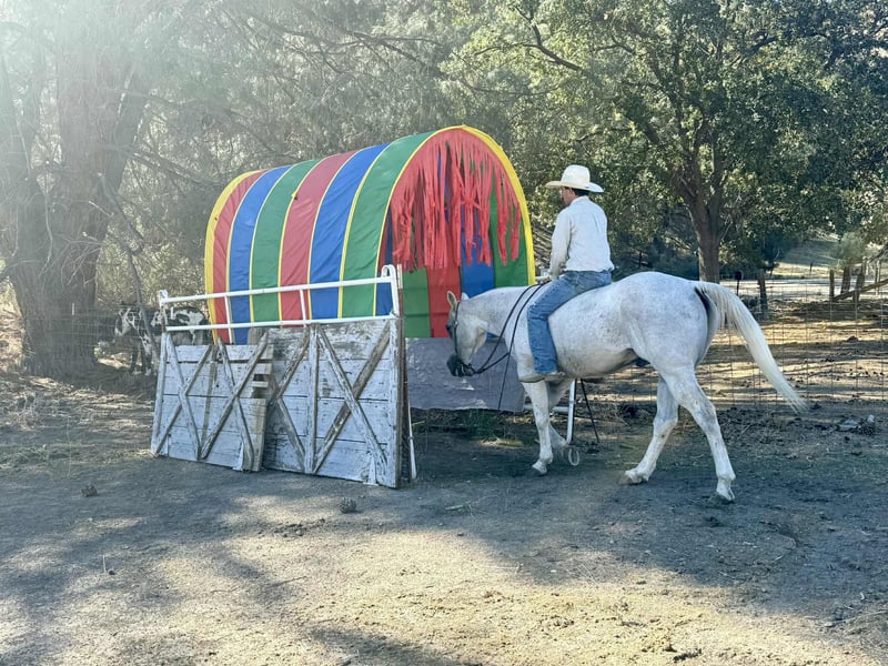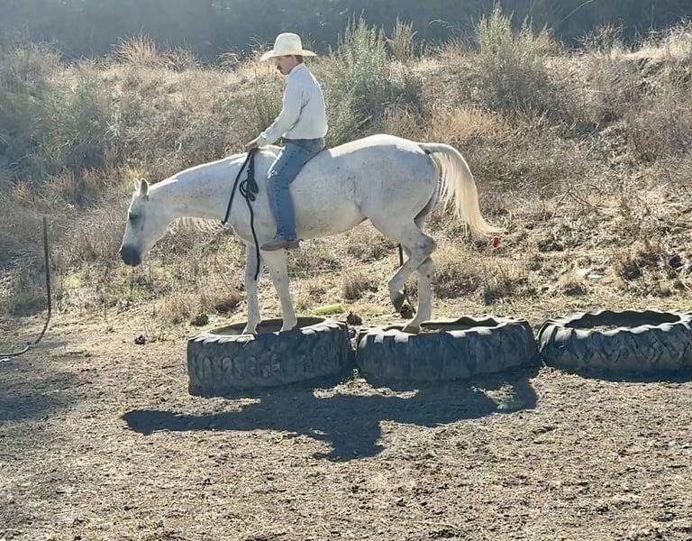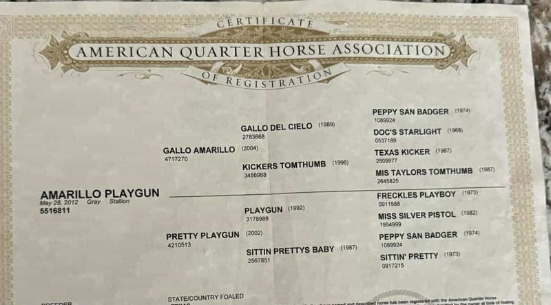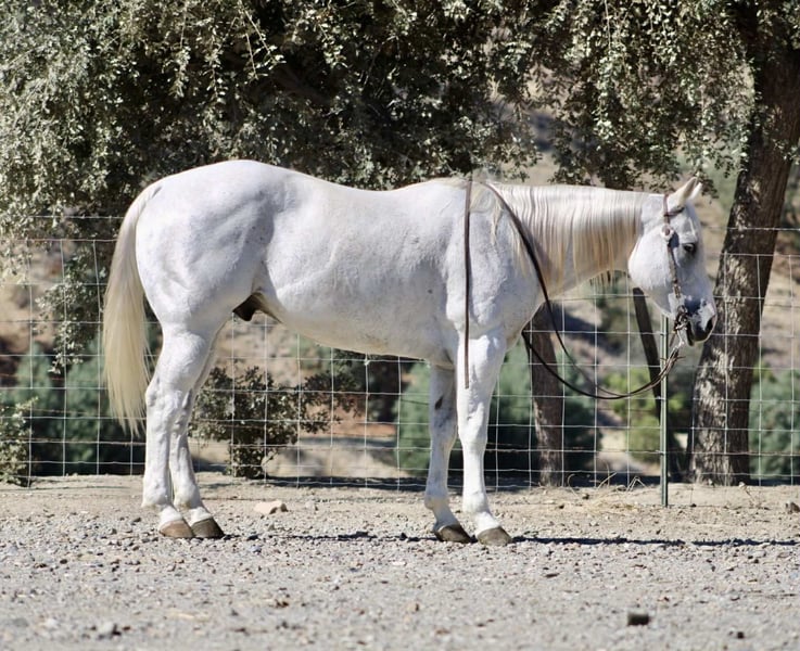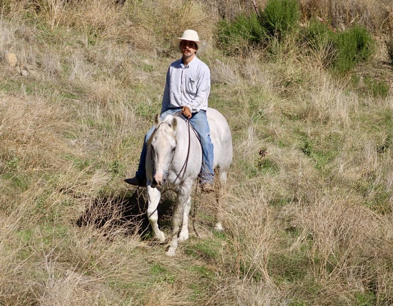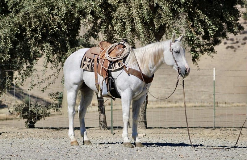 ONLINE AUCTION Place your bids at www.PlatinumEquineAuction.com Starting Bid $3500 Auction ends November 9th, 2025 Need a new saddle? Check out White Rock Saddles on our website or Facebook Amarillo Playgun – The Gentleman of Horses! 2012 AQHA Gray Gelding | Gallo Del Cielo “Rooster” × Playgun × Peppy San Badger. Amarillo Playgun doesn’t need gimmicks or gadgets — he’s the kind that speaks for himself the moment he steps into view. A rich, gray with presence, poise, and a good dose of personality, he’s the kind of gelding that makes everyone in the barn stop and look twice. Bred right and built right, this son of Gallo Del Cielo “Rooster” and Playgun has the kind of foundation that lasts. His bloodlines are stamped with cow sense, athletic ability, and trainability, and Amarillo carries every ounce of it with style. But what makes him truly special isn’t just his pedigree — it’s that rare, steady-minded, people-loving attitude that makes him pure joy to ride. He’s the picture of calm confidence — traffic, flags, tarps, balloons, cattle, barking dogs, strollers, you name it — he’s been there, seen it, and probably yawned his way through it. Kids can ride him, beginners can learn on him, and your seasoned hands will still grin at how good he feels. He’s a gentleman through and through — quiet to tack, easy to catch, and always happy to go to work. Under saddle, Amarillo is as smooth and collected as they come. He stays soft in the bridle, lopes slow, balanced circles, and has a stop that’s easy and deep without any fuss. He backs like a dream, side-passes, opens gates, and turns around with just enough ranchy flair to make you smile every time. His transitions are silky, his mind stays level, and he handles rough terrain like he’s reading the trail map for you. This horse has a resume that speaks volumes — he’s done ranch work, gathered and sorted cattle, roped and doctored cattle from the open pasture to the branding pin and arena. He crosses rivers and bridges, hauled to town, and packed kids down trails. He’s steady in a group, confident alone, and has that golden “point-and-go” attitude that makes him the ultimate trail master. You can lope him across the pasture bareback, doctor a calf, or take him through an obstacle course — he’s always the same: relaxed, reliable, and willing. He clips, bathes, stands tied all day, loads easy, and is a saint for the farrier. He’s just as happy turned out in a pasture as he is stalled up and pampered. He’s got a kind eye, an even kinder soul, and the kind of steady heart that makes you feel safe from the first ride to the thousandth. If you’re looking for the real deal — a horse with training, looks, brains, and a calm nature that’s second to none — Amarillo Playgun is that once-in-a-lifetime find. Smooth, classy, gentle, and as dependable as the day is long, he’s truly The Gentleman of Horses. 📍Longhorn Ranch – Paicines California 📞 Dina 831:537:1915 ONLINE AUCTION Place your bids at www.PlatinumEquineAuction.com Starting Bid $3500 Auction ends November 9th, 2025 Need a new saddle? Check out White Rock Saddles on our website or Facebook