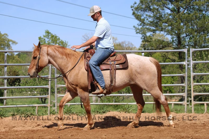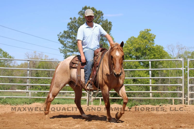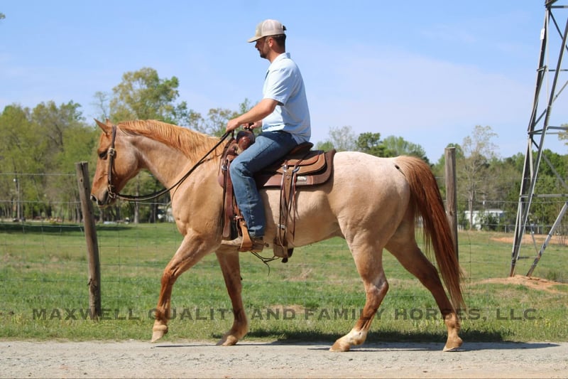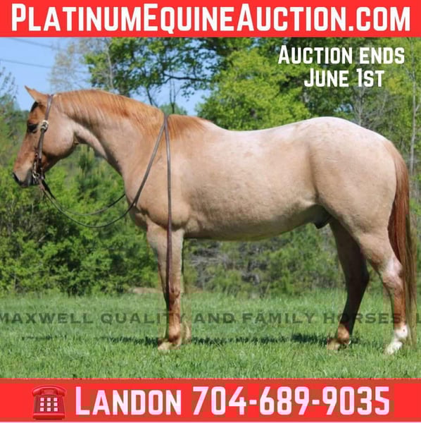 ONLINE AUCTION Place your bids at www.PlatinumEquineAuction.com Starting Bid $3500 Auction ends June 1st, 2025 Need a new saddle? Check out White Rock Saddles on our website or Facebook! Rivet is a 13 year old, red roan quarter horse gelding who’s truly as wide as he is tall. Standing 15h with a stout build from jaw to foot. The pictures just can’t do him justice! Rivet will ride in the palm of your hand and is slow and easy for the kids, he will build your confidence levels yet can pick up to do any job that is asked of him. He will trail ride alone or with a group and will go where you please. He will cross creeks, logs, ditches, deadfall, you name it and he will ride through it! He will push cattle and side pass to the gates, it’s all built in his resume. He sells sound and sane and will turn heads in any crowd. He is one hand broke, has a smooth lope with a good stop and a good mind. Located in Cherryville, NC nad we can setup deliver anywhere. Please call or message Maxwell Family Horses Landon 704-689-9035 with any questions or to make a buy it now offer. THANKS! ONLINE AUCTION Place your bids at www.PlatinumEquineAuction.com Starting Bid $3500 Auction ends June 1st, 2025 Need a new saddle? Check out White Rock Saddles on our website or Facebook!