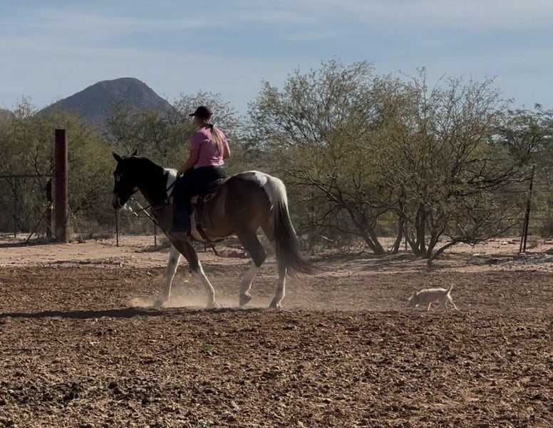 ONLINE AUCTION Place your bids at www.PlatinumEquineAuction.com Starting Bid $3500 Auction ends January 4th, 2025 Need a new saddle? Check out White Rock Saddles on our website or Facebook Flashy and sweet!! Mickey is a gorgeous 15 year old buckskin paint gelding standing a stout 15.3 hands tall wearing a size 1 shoe. Mickey is a finished head horse, he is good in the box, scores well, and knows his job when it’s time to rope. He has been hauled to jackpots and would also make a great practice horse at home. He neck reins, has a good stop, and is responsive and moves off your leg very well. He is more go than woah but doesn’t have a mean bone in him. Mickey has also been trail ridden and is happy to go out alone or with others. He’s been used on the ranch to push cattle and check fence. On the ground Mickey is a total love bug. He always has his head over his stall waiting for attention and love from his people. He stands tied, bathes, loads and hauls well. He gets along great with other horses and is even stalled next to our stallion here. Mickey would do best with a quiet and confident rider as he is responsive to your aids and not a dull type of horse. He is sound with no maintenance. Mickey does have a very mild sway back, but it does not affect his soundness or performance at all. This sweet boy is ready to be someone’s number one best friend! He is located in Marana, Arizona and we are happy to help arrange transport anywhere for him. Please feel free to call or text Claire Siebols with any questions about Mickey at 435-899-0508 ONLINE AUCTION Place your bids at www.PlatinumEquineAuction.com Starting Bid $3500 Auction ends January 4th, 2025 Need a new saddle? Check out White Rock Saddles on our website or Facebook