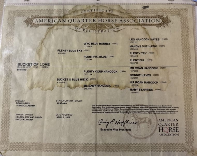 ONLINE AUCTION Place your bids at www.PlatinumEquineAuction.com Starting Bid $3500 Auction ends June 8th, 2025 Need a new saddle? Check out White Rock Saddles on our website or Facebook! His name is “Bucket Of Love” but we call this cool, ranchy, registered AQHA gelding, Navajo and he is everything anyone could want and more! This gelding has the most heart and want to please then anything! He will never quit you and does anything and more of what he is asked for. Navajo is 13 years old, stands 15.3hh tall and weighs 1300lbs. He is put together correct and always looks outstanding. He has a gorgeous mane past his shoulders and very thick tail. Navajo is very easy to handle, stands for everything from shoeing to saddling. Navajo is an absolute DREAM to trail ride, jumps right into the water like a fish! He loads like a dream and hauls good with other horses and cattle. He stays turned out with 4 other geldings and a mini pony, gets along good with mares as well and does fine in a stall. He does great tied to the trailer and takes in all the sights and noises of new places. Navajo is pretty enough, and classy enough to go to the show pen as well and would be great at that as well. We absolutely encourage any one to come try and see how great he is for yourselves but we are also able to arrange shipping anywhere from Hawaii to Canada and any state in the U.S. He is located in Lipan Texas Please Call or text Allen Morse 270-963-5491 for more information. ONLINE AUCTION Place your bids at www.PlatinumEquineAuction.com Starting Bid $3500 Auction ends June 8th, 2025 Need a new saddle? Check out White Rock Saddles on our website or Facebook!