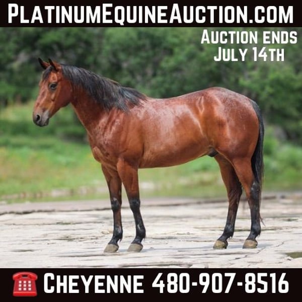 ONLINE AUCTION Place your bids at www.PlatinumEquineAuction.com Starting Bid $3500 Auction ends July 14th, 2024 Need a new saddle? Check out White Rock Saddles on our website or Facebook! We are proud to offer Wyatt, a STUNNING 2011 AQHA gelding with an impressive background & a heart of gold! Wyatt has been a cornerstone of ranch life and an exceptional trail horse, earning his keep with his dependability and skill. He boasts old school breeding, making him a true testament to the quality and versatility of the American Quarter Horse. Wyatt comes from lines of old-school foundation breeding, renowned for producing horses with remarkable stamina, intelligence, and versatility. His pedigree is a testament to the best traits of the breed, ensuring that he is not only unfailing but also a pleasure to ride. Whether you’re working cattle or enjoying a trail ride, Wyatt makes the experience effortless and enjoyable. Wyatt is light on his feet, responsive in the bridle, and has an outstanding neck rein. His smooth gaits and cadence make him a comfortable ride with or without a saddle. He’s a blast to hop on bareback & hit the trails! He has spent many years working as a ranch horse, and his extensive experience in this role shines through in everything he does. He is no stranger to long days of herding cattle, navigating challenging terrain, and handling the demands of daily ranch life. His strong work ethic and unwavering reliability make him an outstanding partner for many tasks. Wyatt’s nickname, the “Cadillac” of trail horses, is well-earned. He’s steady, reliable, and ensures a smooth ride over any terrain. He’s especially impressive in rocky areas, where his attentiveness and sure-footedness shine. His careful steps ensure both his safety and yours. Wyatt has been primarily used as a trail & ranch horse but has always been extremely well care of to ensure he’s never been overused. He’s a great choice for those who love to explore the great outdoors on horseback. One of Wyatt’s standout qualities is his rider-friendly nature! If you can get on and hold the reins, Wyatt will take care of the rest. He’s perfect for those looking for a horse that can transition smoothly from trail riding to arena work. Whether you’re interested in casual riding, practicing patterns, or are more focused on a specific discipline, Wyatt is up for the task. However, I’d like to note that Wyatt isn’t a warm, in-your-pocket horse on the ground. He’s more reserved & not necessarily the type to nuzzle up for attention though he more than makes up for it with his exceptional manners. He stands tied all day long without fuss, making him easy to handle to groom, saddle, and bathe, load, lead, etc. NO kick, bite, set back, buck, rear, bolt or other bad habits. This handsome gelding is great with other horses & is up to date on all care – records available & he is healthy & sound!! He does have an older scar on his front leg, but it is purely cosmetic. His condition reflects how well he has been cared for – Wyatt literally glows! He is the perfect size, standing 14.3 hands with plenty of substance. Why Wyatt? Wyatt offers a unique combination of experience, reliability, and pedigree. His intelligence and willingness make him a joy to work with, whether you’re a more experienced rider or someone looking to grow your horsemanship skills. He’s ready to continue his journey with a new owner who appreciates his qualities and will value him as much as we do. He’s a handsome gelding with a wealth of experience and a proven track record. If you’re in the market for a dependable, skilled, and experienced horse, Wyatt might just be the perfect fit for you. Contact Cheyenne at 480-907-8516 to visit and see if this special gelding is what you’ve been searching for! I am an open book on this horse & happy to answer any questions you may have. Wyatt is located in Stephenville, TX and we can help arrange shipping to any location. ONLINE AUCTION Place your bids at www.PlatinumEquineAuction.com Starting Bid $3500 Auction ends July 14th, 2024 Need a new saddle? Check out White Rock Saddles on our website or Facebook!