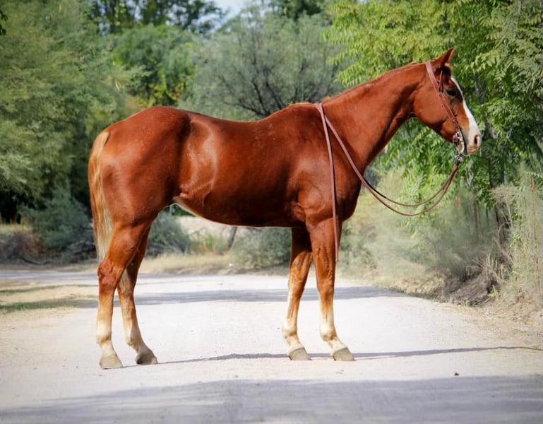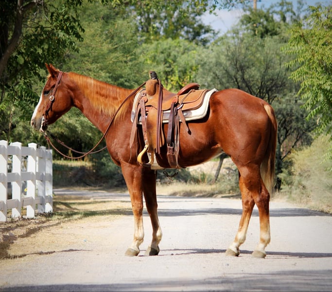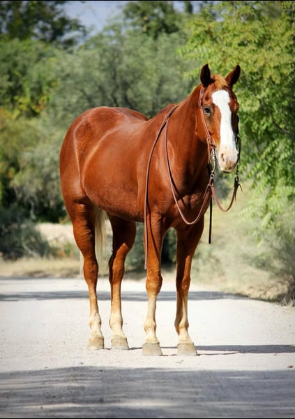 Take a look at this handsome fella! Kid is a 13 year old grade gelding standing 15.1hh. With a gentle demeanor and fancy handle, this gelding is sure to excel in any home he goes to! Whether you’re looking to mosey on down the trail, ride the busy streets of town, make fancy patterns in the arena, haul him to the gymkhanas, or hit the ranch trail competitions, this is the gelding for you! Good to groom, saddle, bridle, clip, and shoe. This gentle gelding is safe for absolutely anyone! Point this horse in any direction and he’ll go without hesitation. He will cross water, logs, and rocky terrain. You name it and he’ll go through it, surefooted as can be! Not only is this horse great outside, he is fancy in the arena as well! Billy the kid will walk, trot, and lope both ways on a draped rein, turn around, and side pass both ways. He is never in a rush and will stay as slow or fast as you ask him to go. Freshly shod and floated on 10/03/24. Located in Camp Verde, AZ Can help arrange hauling anywhere in the US!! D/C Equine Dallas 804-822-2233.