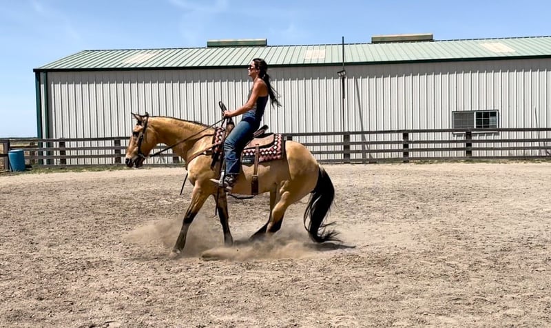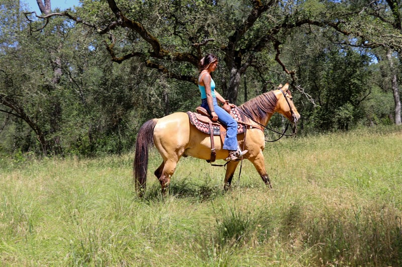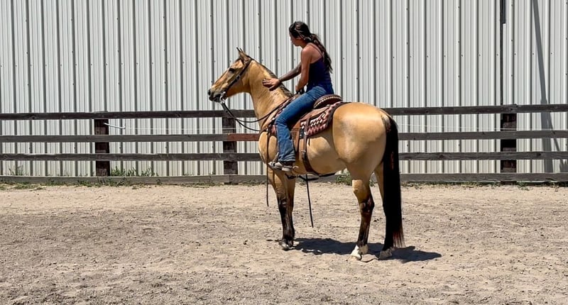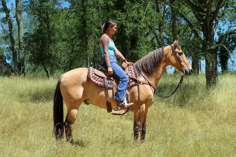 ONLINE AUCTION Place your bids at www.PlatinumEquineAuction.com Starting Bid $3500 Auction ends June 16th, 2024 Need a new saddle? Check out White Rock Saddles on our website or Facebook! Meet Akon a 13 year old 15 HH horse that turns heads and wins hearts. With his stunning buckskin coat that shines with a natural luster, Akon is the epitome of beauty and elegance. This exquisite horse is not just a pretty face. Akon is exceptional on the trails, tackling any terrain with confidence and ease. Whether it’s dense forests, rocky paths, or water crossings, Akon moves forward with determination and poise. His sure-footedness is comparable to a mountain goat, making him the perfect partner for adventurous trail rides. His extensive experience on the ranch has honed his skills, making him adept at gathering cattle even in the steepest and roughest country. In the arena, Akon is a sight to behold. He is fancy broke and knows his leads, offering a smooth, comfortable lope that is a joy to ride. His transitions are seamless, and his stops are sharp, responding directly to your seat. Akon collects his head beautifully and is light and responsive to both your hands and legs. He has also been started on barrels and poles, showing incredible potential to excel in these areas. Akon is the ultimate multi-tasker. One day he can take you on a leisurely trail ride, the next he can compete in a gymkhana, and then finish the day by gathering cows. His work ethic is unmatched; he goes all day long without a hint of quitting. Akon thrives on having a job and puts his heart into everything he does. Due to his responsiveness and quick-footed nature, Akon is best suited for an intermediate rider and up or a home with a trainer. His high level of training and sensitivity make him an exciting ride for those who can match his energy and skill. Akon is well-mannered and easy to handle. He stands patiently for saddling, bridling, bathing, grooming, blanketing, and the farrier. He loads effortlessly into a trailer, ready to go on any adventure. Akon can even be ridden bridleless and bareback, showcasing his versatility and solid training. If you’re looking for a horse that combines beauty, skill, and an incredible work ethic, Akon is the perfect choice. Don’t miss the chance to own this amazing buckskin gelding. He’s ready to be your next star, whether on the trail, in the arena, or working on the ranch. Experience the elegance, skill, and versatility of Akon firsthand. Arrange a visit today to meet Akon. Contact KW Ranch at 530-852-2032. ONLINE AUCTION Place your bids at www.PlatinumEquineAuction.com Starting Bid $3500 Auction ends June 16th, 2024 Need a new saddle? Check out White Rock Saddles on our website or Facebook!