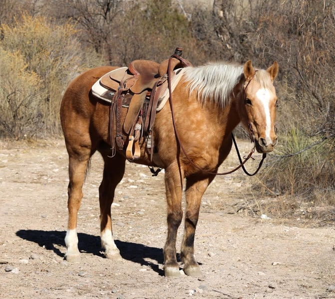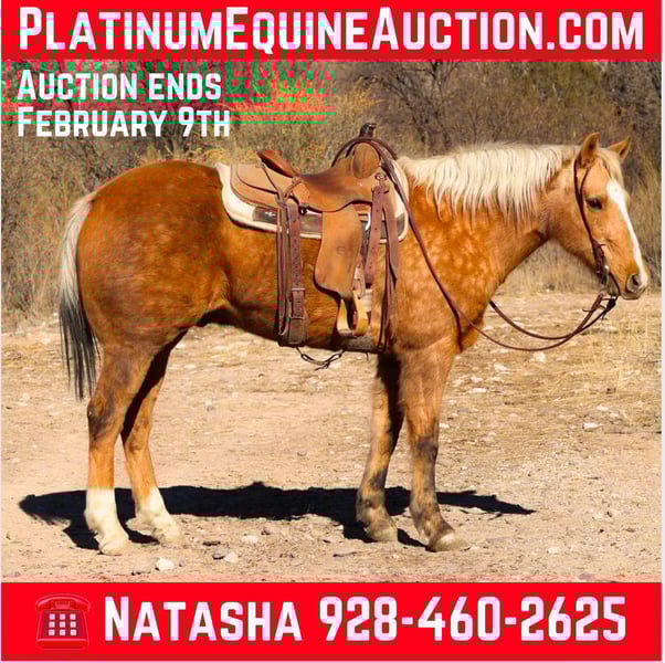 ONLINE AUCTION Place your bids at www.PlatinumEquineAuction.com Starting Bid $3500 Auction ends February 9th, 2025 Need a new saddle? Check out White Rock Saddles on our website or Facebook! Cruz is a 14 year old grade gelding standing 15hh. This big pretty gelding is everyone’s dream horse! Whether you’re looking to go do a long days work, play around in the arena, or hit the trails, Cruz is your man!! We’ve used Cruz all over Arizona working on ranches and he’s no stranger to a long days work. Drag calves, make big circles, doctor yearlings, plow through rough country, you name it and Cruz will do it willing and safe as can be! If a long days work isn’t for you and you just want to mosey on down the trail, Cruz will be just as pleased and take great care of you! This gelding is not only an absolute blast to ride outside, but just as fun and well mannered in the arena! Walk, trot and lope both ways with ease, fancy neck rein and turn around, and a great stop! If you’re looking for a true all around horse then Cruz is your man! Cruz is good to catch, groom, saddle, bridle, bathe, shoe, and load. Will come with a clean coggins and health! Transport can easily be arranged anywhere in the US!! Contact D/C Equine Services Dallas 804-822-2233 Natasha 928-460-2625 Located in Camp Verde, AZ. ONLINE AUCTION Place your bids at www.PlatinumEquineAuction.com Starting Bid $3500 Auction ends February 9th, 2025 Need a new saddle? Check out White Rock Saddles on our website or Facebook!