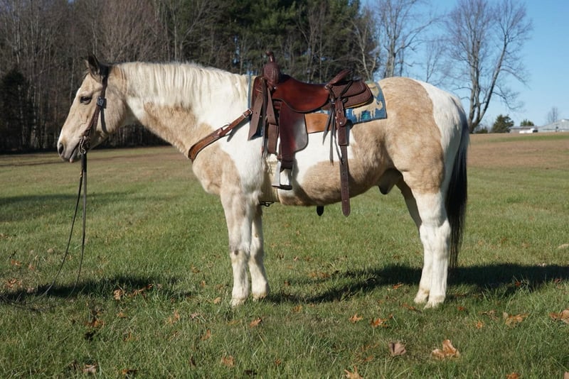 ONLINE AUCTION Place your bids at www.PlatinumEquineAuction.com Starting Bid $3500 Auction ends January 5th, 2024 Need a new saddle? Check out White Rock Saddles on our website or Facebook! Cookie Dough is a 14 year old Buckskin Paint gelding! He stands 14.3 hands tall and has a chunky build! He is cute as a button! Has pretty markings and has a great personality! He is a very laid back horse that is very simple to ride! The best part about him is he is safe! His favorite speed is slow but he will get up and go when asked! He will walk, trot, and lope! His favorite place to be is on the trails! He has been ridden all over Kentucky and Tennessee on over night camping trips! He is very seasoned out in the woods! He has been ridden in parades as well! He is easy to catch and handle and can stay fat on air basically! Super easy keeper! If you’re looking for a laid back teenage gelding to take care of you then don’t miss out on Cookie! He is cute as a button and an easy operator! Located in Rineyville Ky! Call Clayton Ryan 270-766-2641. ONLINE AUCTION Place your bids at www.PlatinumEquineAuction.com Starting Bid $3500 Auction ends January 5th, 2024 Need a new saddle? Check out White Rock Saddles on our website or Facebook!