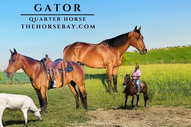 OPEN BIDDING ON THEHORSEBAY,COM. SALE ENDS ON 07/24 @ 4PM CT. More information is available on the website, including an UTD vet inspection, Coggins, video, images, and the owner's contact information to ask questions, request information, or make arrangements to come to visit. Gator is a beautiful 14 yr blood bay quarter horse gelding standing 15.1 with a nice mane and tail. Horses like Gator are very hard to find if you’re looking for the perfect trail horse that’s fun to ride and good for the whole family. Gator is your man. Gator is fancy broke and a finished trail horse and has done ranch work, checking fences, and gathering cattle. He is seasoned on organized trail rides. He will ride in a group or out alone. He will pony colts or mares all day. Gator has a good stop; put your feet forward and sit down in your seat; he stops right then and there. Gator will walk, trot, and canter, taking both leads. Gator will lope off from a standstill. Best suited for someone who knows the general riding basics. He is good for the farrier, easy to bathe, and super easy to load in a trailer. Gator is well trained with a one-hand neck rein, or direct rein doesn’t matter. It depends on what’s comfortable for you. Gator is a versatile horse that can go in any direction you want. He has been trail-ridden and camping in several states. He has seen everything possible on the trails; nothing seems to bother him. He will carry a flag, cross creeks, ditches, and logs, and navigate rough, rocky areas. Gator doesn’t mind traffic or side-by-side. He has very nice movements and will also side pass and yield hindquarters. Has had some experience roping around the ranch. Gator has been exposed to all kinds of wildlife, such as deer, turkey, or other animals like cows or dogs, and will go anywhere he is asked to. Don’t worry about having difficulty mounting him. He will stand to be mounted from a mounting block, fallen logs, or rocks along the trail. He has ridden many miles in the mountains and encountered every obstacle on the trail. He will go up or down even the steepest slopes, across deep creeks, over downed trees, and all types of rough terrain while still being sure-footed. Negative coggins, sound wellness check. PPE is welcome at buyers’ expense. Feel free to come and check Gator out. YouTube videos are available as well. Located in Hodgenville, KY. Shipping is available.