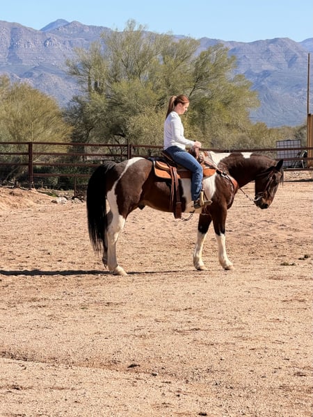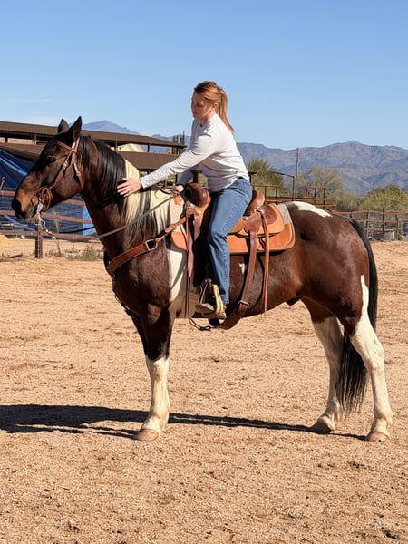 15y/o quarter horse draft cross 15.3 hands, 15 years old. Negative coggins in November 2025, teeth floated December 2025, rabbis vaccine November 2025. Jimmy was originally used on ranches, then was used at a riding school in Pennsylvania. We got him in November for my husband/kids, and he’s too much horse. Jimmy has a fast walk, side passes, neck reins, will stand tied for all barn tasks. Jimmy has more go than woah and would be good for an intermediate/advanced rider, as he will test boundaries at first. He has a sweet temperament, my 4 y/o daughter gets on bareback and we pony her around with no issues, but once he’s saddled he’s ready to go to work. I think Jimmy would do best and really enjoy being back on an I think Jimmy would do best and really enjoy being back on a ranch and having a job to do. He’s been ridden extensively in the mountains, will cross bridges and rivers with no problem. Asking $10000. Call or text Theresa 928-713-4638