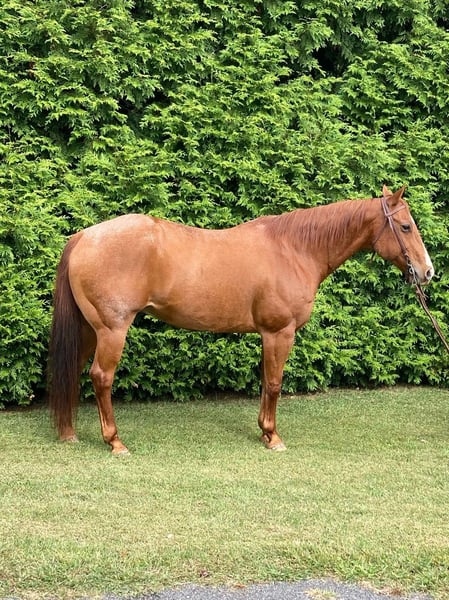 "AVAILABLE ON ONLINE HORSE AUCTION AT www DOT MagicHorseAuction DOT com BIDDING OPEN NOW thru TUESDAY | October 28TH! - BUY IT NOW AVAILABLE! *Final price will be determined on auction site* CONSIGNOR CONTACT INFO: Meg Reeves 610-888-3424 LOCATION: Royersford, PA "Beau is a sweet, gentle, red roan gelding standing at 15.1 hands. He’s a 2009 model, Doc Bar and Peppy bred with a strong frame and nice hip making him suitable for any size rider. Beau is sound and hasn’t taken a single lame step. He is happy barefoot, and on rocky trails we ride him with front hoof boots. Beau rides out on the trails and is happy to both lead and follow. We haven’t taken him out alone, but he probably would do fine. He’s confident with all the terrain we’ve thrown at him, including bridges and water and even bicycles/e-bikes. Beau rides in a snaffle, curb, or even bitless, and does prefer a rider educated enough to not hang on his face constantly as he does give quite nicely to the bridle. He stands to be tacked, will pick you up from the mounting block, and stand quietly while you get on and situated. Beau can ride out perfectly quiet. A confident, quiet rider is best suited. In the ring Beau walks and trots on a loose rein, and while he can be quick he isn’t a runaway. He’ll also happily settle into the bit and give you a smooth, easy jog. Beau’s lope could use more work- he tends to get short strided and choppy. When he takes a breath and remembers that he does in fact know how to canter, everything smooths out to a nice even lope. We’ve also been working recently on moving off the leg, and he has impressed us with how quickly he has begun to understand and gotten quite willing to move off leg pressure. He can independently move the shoulders, hind quarters, or throw it all together for a sidepass. Overall Beau is a really great horse, that would excel with a confident intermediate + rider. We think he would do well as a youth horse, and could potentially even be a great lesson horse in a consistent program. Whether you’re looking for your next trail horse, or a partner in the ring Beau is ready for your consideration. He is currently UTD on all shots, coggins, etc. Can be turned out in a mixed herd. Located in Royersford, PA we are convenient to popular shipping routes along the east coast.