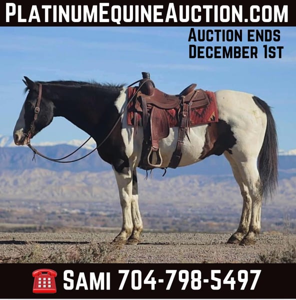 ONLINE AUCTION Place your bids at www.PlatinumEquineAuction.com Starting Bid $3500 Auction ends December 1st, 2024 Need a new saddle? Check out White Rock Saddles on our website or Facebook! Rooster is a 15.2 hand, 15 year old paint gelding. This sweet gelding is a trail horse deluxe who has spent his life being a ranch horse in New Mexico. He has seen and done a lot of jobs in his life. He will walk, jog, and lope. He neck reins, backs, and side passes. He has loaded cattle in trucks, dragged calves to the branding fire and more! Rooster is excellent on the trails as well. No matter if you’re looking for a leisurely ride down the suburban trails with traffic, in the Colorado Rockies, or like more middle ground of trail riding, he will do it all. Rooster is traffic safe. He is used to all kinds of wildlife out on the trails and doesn’t get rattled when coming across various animals. He rides out alone or with a group. Rooster trailers well and settles right into a new place if you are going on an overnight camping trip. Don’t miss out on an eye catching, safe, and dependable gelding! For more information, please call or text Sammi Waugh 704-798-5497 Located in Brooksville, KY. ONLINE AUCTION Place your bids at www.PlatinumEquineAuction.com Starting Bid $3500 Auction ends December 1st, 2024 Need a new saddle? Check out White Rock Saddles on our website or Facebook!