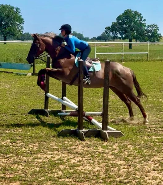 ONLINE AUCTION Place your bids at www.PlatinumEquineAuction.com Starting Bid $3500 Auction ends August 4th, 2024 Need a new saddle? Check out White Rock Saddles on our website or Facebook! This mare is the total package! Alice is a well rounded 15yr old Red Roan Mare. She stands between 15.2 and 15.3 hands. She is deep bodied and big boned. She is very versatile, excels English & Western. She is extremely well broke, carries herself correctly in every way, has a beautiful trot and breaks at the poll nicely. She is calm and confident when under saddle. She has been jumping a course of fences for the past 6 months, she has been in the PPH program for over a year. Her first schooling show she won all 6 classes shown 18” to 2’6. She would also excel in the jumper division or 3 day eventing. She has jumped 3’ with a ton of scope to go higher. Her lead changes are a work in progress but with added leg, she will change over a fence. She has done ranch work, been roped on and is lightly patterned on the barrels by an NFR Qualifier. She has seen all the bright lights and loud music of the rodeos. She has also been trail ridden a lot both in Texas and in the mountains of Wyoming. She loves water, will cross bridges and walk over downed logs. She stands quietly to be saddled/mounted and will even put her head down to be bridled. She can be intimidating due to her size, power and her buttons, I would recommend an intermediate rider. She has been ridden and jumped by a 12 year old girl regularly. If she doesn’t know you, she will be quirky and cautious on the ground at first. Once she warms up to you, she LOVES attention and is very sweet. She has been barefoot and has been shod, has not required any maintenance. She is up to date on her teeth, farrier, vaccines and worming. She passed a lameness exam with flexions on 5/22 and they also verified her age. This is a mare that is so versatile and will be someone’s lifelong partner. Contact Brittany Sporer 661-343-5113 with any questions. Located in Stephenville, TX. ONLINE AUCTION Place your bids at www.PlatinumEquineAuction.com Starting Bid $3500 Auction ends August 4th, 2024 Need a new saddle? Check out White Rock Saddles on our website or Facebook!