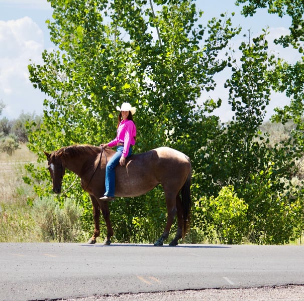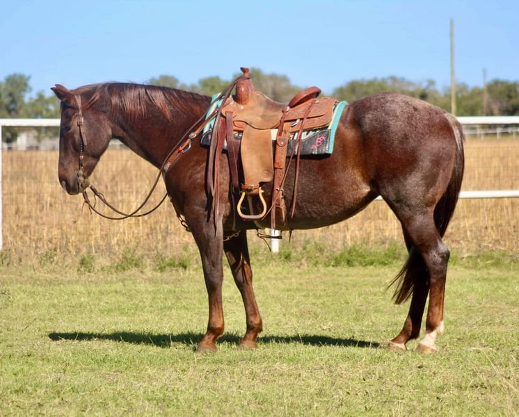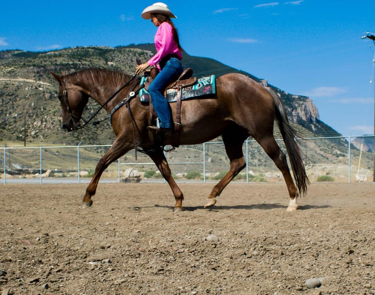 NLINE AUCTION Place your bids at www.PlatinumEquineAuction.com Starting Bid $3500 Auction ends November 24th, 2024 Need a new saddle? Check out White Rock Saddles on our website or Facebook! VERSATILE This mare is the total package! Alice is a well rounded 15yr old Red Roan Mare. She stands between 15.2 and 15.3 hands. She is deep bodied and big boned. She is very versatile, excels English & Western. She has been apart of our family for almost two years and we love her dearly. She is extremely well broke, carries herself correctly in every way, has a beautiful trot and breaks at the poll nicely. She is calm and confident when under saddle. She has been ridden by many different levels of riders as young as 12 years old. : She has been jumping a course of fences for the past 9 months. Her first schooling show she won all 6 classes shown 18” to 2’6. She would also excel in the jumper division or 3 day eventing. She has jumped 3’ with a ton of scope to go higher. Her lead changes are a work in progress but with added leg, she will change over a fence. She has a +10 trot. : She has done ranch work, been roped on and is lightly patterned on the barrels/poles by an NFR Qualifier. She has seen all the bright lights and loud music of the rodeos. She has also been trail ridden a lot both in Texas and in the mountains of Wyoming. She loves water, will cross bridges and walk over downed logs. She is sure footed and loves long trail rides. She has seen traffic and downtown city streets. : She stands quietly to be saddled/mounted and will even put her head down to be bridled. She is very very broke with a lot of buttons, she has her own motor. If she doesn’t know you, she will be quirky and cautious on the ground at first. Once she warms up to you, she LOVES attention and is very sweet. She has been barefoot and has been shod, has not required any maintenance or special treatment. She is up to date on her teeth, farrier, vaccines and worming. She is sound, lameness exam done by a veterinarian and age verified. This is a mare that is so versatile and will be someone’s lifelong partner. Contact Brittany Sporer 661-343-5113. Located in Cody, WY. ONLINE AUCTION Place your bids at www.PlatinumEquineAuction.com Starting Bid $3500 Auction ends November 24th, 2024 Need a new saddle? Check out White Rock Saddles on our website or Facebook!