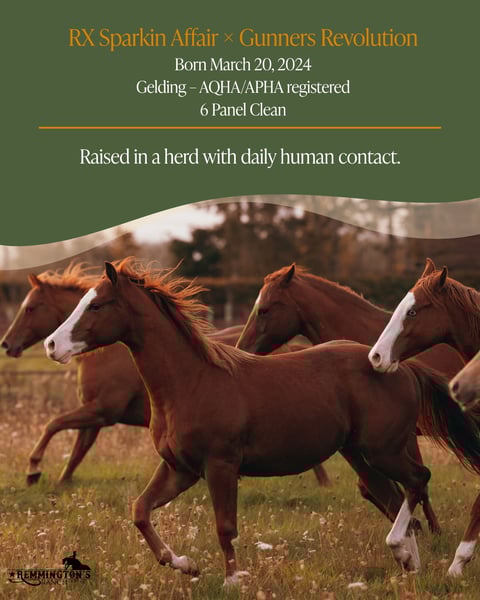 View the photos to discover the story of “Sparky” – Gunners Little Spark. Born March 20, 2024 – Gelding – AQHA/APHA registered – 6 Panel Clean A yearling with body, balance, and a spark of attitude. Always cheerful, always curious — ready to discover the world together with someone special. Raised in a natural herd with calm, space, and daily human connection. 📍 Remmington’s Ranch – Arendonk (BE) www.remmingtonsranch.be ---------------------------------------------------------------------------------- Bekijk in de foto’s het verhaal van “Sparky” Gunners Little Spark. Geboren 20 maart 2024 – Ruin – AQHA/APHA ingeschreven – 6 panel clean Een jaarling met body, balans en een vleugje attitude. Altijd vrolijk, altijd nieuwsgierig — klaar om samen met iemand de wereld te ontdekken. Opgegroeid in kuddeverband met rust, ruimte en dagelijks contact met de mens. Vraagprijs: €9.500 excl. btw 📍 Remmington’s Ranch – Arendonk (BE) www.remmingtonsranch.be Kijk ook naar onze andere advertenties . Wij hebben nog meer super leuke paarden te koop !