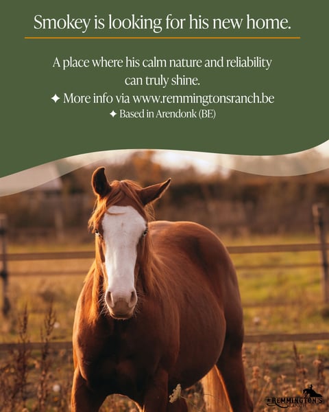 iew the photos to discover the story of “Smokey” – Be Aech Smoking Gun. Born May 21, 2024 – Gelding – AQHA registered – 6 Panel Clean A young powerhouse with a calm presence and a heart of pure honesty. Strong, steady, and so well balanced you trust him instantly. For the rider who leads with feel, he’ll be a true partner. Raised in a natural herd with calm, space, and daily human connection. 📍 Remmington’s Ranch – Arendonk (BE) www.remmingtonsranch.be -------------------------------------------------------------------------- Bekijk in de foto’s het verhaal van “Smokey” Be Aech Smoking Gun. Geboren 21 mei 2024 – Ruin – AQHA ingeschreven – 6 panel clean Een jonge krachtpatser met een kalme uitstraling en een goudeerlijk karakter. Sterk, stabiel en zó in balans dat je hem meteen vertrouwt. De ruiter die met gevoel rijdt, vindt in hem een echte maat. Opgegroeid in kuddeverband met rust, ruimte en dagelijks contact met de mens. De vraagprijs voor Smokey : €9.500 excl. btw 📍 Remmington’s Ranch – Arendonk (BE) www.remmingtonsranch.be
