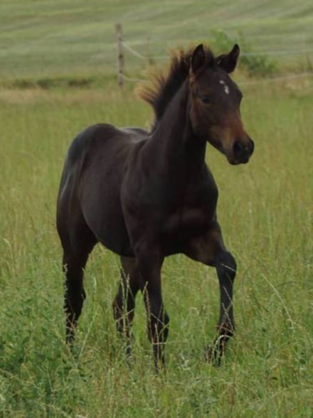 Haidas Joker Cat, also known as Joker, is a stunning stallion sired by the successful cowhorse stallion Mr Joker Cat, who has achieved numerous wins with Maik Bartmann. Joker's dam is a daughter of Smartest Magician, who has been successfully shown in cutting by Jörg Pasternak. Joker is very correctly conformed, with a strong build and in the ideal black-brown color. His movements are highly athletic, and he playfully demonstrates his talent for stops, turns, and flying changes. Sire: Mr Joker Cat by SDP Joker / High Brow Cat Dam: SB Haidas Princess by Smartest Magician / Haidas Spur Pep Our foals are raised in a herd environment with a foal group, regularly dewormed, and introduced to the farrier. More information at www.brallentin-quarterhorse.de