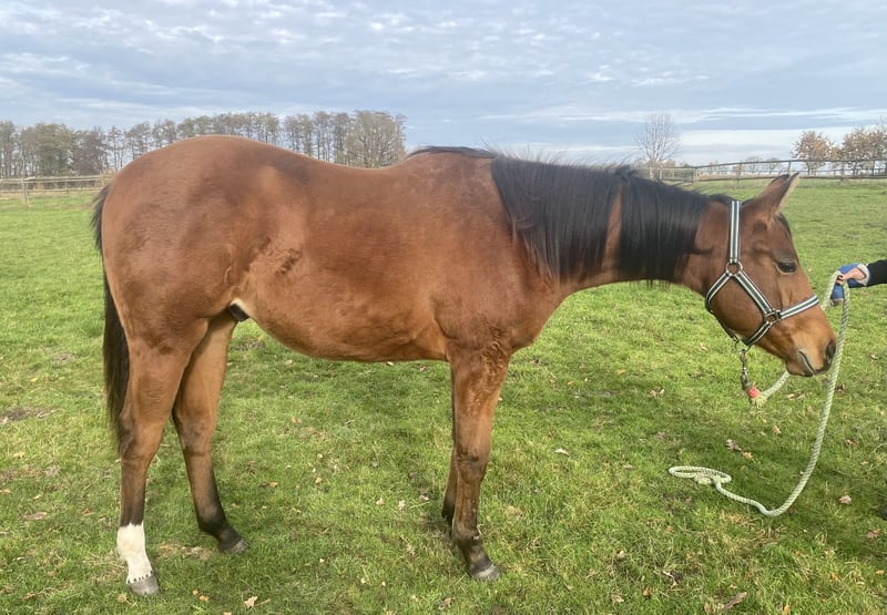 Aufgrund von Reitsportaufgabe trenne ich mich von meinem talentierten lieben Jährlingswallach. Er ist selbstverständlich halfterführig, kennt alle 6 Wochen Hufschmied, Putzen etc. Er ist von jedem zu Händeln und sehr menschenbezogen. Er hatte Anfang des Jahres eine Schnittverletzung am Vorderbein, wurde in der Klinik behandelt und ist nur noch ein kleiner Schönheitsfehler. Er kennt keine Longe und daher werde ich auch keine Videos an der Longe machen, das ist nicht altersgerecht. Es folgen noch Videos von der Weide. Er ist täglich auf der Wiese mit einem Pony und momentan nachts in der Box. Er ist rangniedrig. Es ist kein Notverkauf! Ich möchte, dass die Chemie stimmt….also Vorbeikommen und Anschauen!
