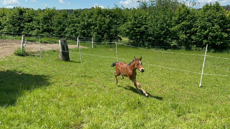 Der überaus schicke, braune Quarter Wallach PEPPYS DRAGON STAR mit markantem Stern, geboren am 1. Mai 2024, sucht seinen Platz fürs Leben. Eckdaten: Geburtsdatum: 01.05.2024 Farbe: Braun mit Stern Voraussichtliches Endmaß: ca. 1,50 m Papiere: Original AQHA-Papiere & Equidenpass Genetik: Über Eltern N/N frei Abstammung & Herkunft: Beide Elterntiere stehen im Stall, können jederzeit besichtigt werden und überzeugen mit einwandfreiem Charakter und freundlichem Wesen. Charakter & Entwicklung: PEPPYS DRAGON STAR zeigt sich aufgeschlossen, menschenbezogen und verfügt über ein solides Fundament mit harmonischen Proportionen. Im Freilauf präsentiert er sich motiviert, mit viel Vorwärtsdrang und lockeren Bewegungen. Aufzucht & Ausbildung: Artgerechte Aufzucht in gemischter Herde Regelmäßig entwurmt Lernt das Fohlen-ABC Eignung: Mit seinen Anlagen und seiner Abstammung stehen ihm später alle Sparten offen – vom ambitionierten Freizeitpartner bis zum Turnierpferd.