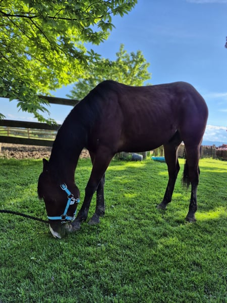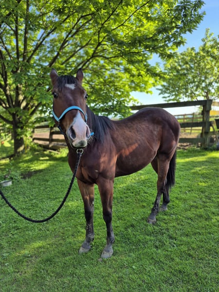 Hier is onze Diamond Little Chex. Chex is een zeer rustige, geduldige en gevoelige ruin. Chex is ook aan de hoefsmid voorgesteld en heeft dit geduldig doorstaan. Hij is ook al een paar keer met de trailer vervoerd, en hij gaat daar elke keer heel ontspannen mee om. Verder is hij ook gewend aan lawaai (auto's, tractors, vrachtwagens, kettingzagen, enz.). Helaas is er geen stamboom van hem omdat we niet weten wie de vader is. De moeder is Linas Little Jessy. Bij verdere vragen graag bellen.