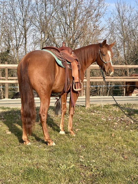 Meraviglioso castrone quarter con documento americano, compirà 3 anni ad aprile. Carattere docile, tranquillo e molto equilibrato, molto educato da terra e facile e collaborativo in sella.