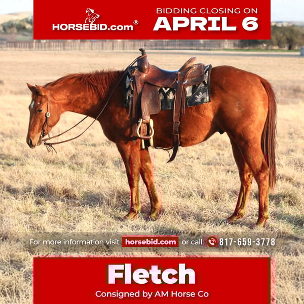 🌟𝑨𝒑𝒓𝒊𝒍 𝐀𝐋𝐋 𝐒𝐓𝐀𝐑 𝐋𝐈𝐍𝐄𝐔𝐏🌟 Happening now thru MONDAY | APRIL 6th - Available EXCLUSIVELY on HorseBid's website! For more details and to register visit: www.Horsebid.com CONSIGNOR CONTACT: AM Horse Co 817-659-3778 LOCATION: Mineral Wells, TX BREED: AQHA REGISTERED: Yes REGISTERED NAME: San Tule Smart COLOR: Sorrel HEIGHT: 14.2 AGE: 3 GENDER: Gelding 🔷SAN TULE SMART🔷 🔹2023 model AQHA gelding 🔹14.2hands tall, and stout! 🔹All around prospect or ranch horse We call this cute little guy Fletch, he’s one in a million! Fletch is the kind of horse that’ll come to you everytime in the pasture just to say hello. He is dog gentle, and so easy to be around. Fletch is handy broke, will take right to whatever you ask of him! He’s got his basic arena work down both directions, with a rocking chair smooth lope. We’ve gathered pastures, loaded trucks and doctored on him. Fletch is just happy to be there! We’ve pen roped on him and tracked the dummy. If you’re looking for a really nice colt to go on with or a young one to get going your own way, here he is! You don’t have to know everything to own a colt like this. Fletch has never offered anything silly, never bucked or even spooked. Don’t pass this guy up! Located in Mineral Wells Texas We have reputable haulers that go all over the country, including Hawaii, Canada, ETC. Give me a call or text and I’d be happy to answer any questions! 817-659-3778