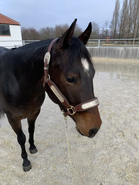 ✨Smart Podoco Gun✨ Schweren Herzens suche ich für meinen geliebten Wallach, aus persönlichen Gründen die ich Privat erzählen kann, ein neues zuhause.🥺 (dringend) 🐴geb. 03.01.2023 🐴American Quarter Horse 🐴Wallach 🐴5 Panel n/n Ich habe ihn mit 10 Monaten von einer sehr netten Züchterin gekauft. Da durfte er schon Traktoren, Kinder, Hunde, Katzen usw. kennenlernen. Beim Tierarzt👩🏻⚕️ ist er stehts immer sehr brav. Zeigt sich immer neugierig und gelassen. Beim Hufschmied⚒️ auch sehr sehr brav. Er mag sehr gerne die Hufschmiedin mal zu ärgern mit knabbern, schlecken und bussi geben. Ansonsten Hufe geben kein Problem. Beim Anhänger🚗 fahren steigt er brav ein und fahrt brav mit. Er braucht jedoch seine zeit zum austeigen da er gerne beobachtet was passiert und mal aufgeregt ist bei neuer Umgebung. 🦄Sein Wesen: -Neugierig -Verspielt -Aufmerksam -Sozial (will mit jedem Tier spielen/freunde sein) -Anhänglich auch mal ungeduldig 🍀Was ich mir für ihn wünsche: -Liebevolles zuhause -Liebe -Geduld -Abwechslungsreiche Arbeit (Spazieren, Bodenarbeit, Equikinetik usw.) -Feste Routine -Vertrauen ❌Was ich mir für ihn besten falls nicht wünsche: -Weiter Verkauf -Schulbetrieb -Stress Er wird von mir als roh Diamant verkauft💎 Da er nur baumlosen sattel, zaumzeug kennt. Ich saß nur max. 6-8 mal für 5-10min oben im schritt und einmal trab. 📍AT🇦🇹 7000 Eisenstadt 🥕🥕🥕🥕🥕 mit gesamten Equipment (Baumsoler sattel, Zaumzeuge, Bosal, Zusatzfutter, Pad, Decke, Halfter uvm.)
