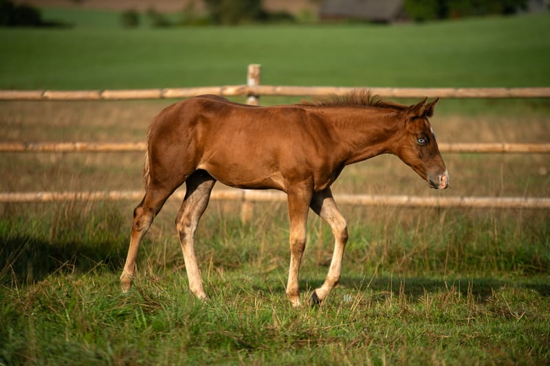We are offering a promising young American Quarter Horse stallion for sale. He was born in 2023 and presents himself in a beautiful chestnut color. With a height of 1.50 cm, he is ideally suited for the reining discipline. He is well-mannered, people-oriented and always willing and motivated to learn. His excellent pedigree and even temperament make him an ideal partner for ambitious riders and trainers. If you are looking for a young, talented horse with a promising future in the sport of reining, then this American Quarter Horse stallion is just right for you! **Contact:** Please contact us for more information and to arrange a viewing.
