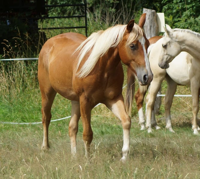 One Shiney Time aka Robbie ist ein wunderschöner QH Wallach von One Shiney Treat einem direkten Shining Spark Sohn. Robbies Mutter ist eineOne Time Pepto Tochter, also feinstes Cuttingblut.. Robbie ist korrekt gebaut, seine Bewegungen sind sehr athletisch und katzenhaft. Er zeigt spielerisch sein Talent für Stopps, Turns und Galloppwechsel. Er ist zur Zeit angeritten und ist sehr sensibel und fein. Sire: One Shiney Treat by Shining Spark / Grays Starlight Dam: Escada Be One Time by One Time Pepto/Shorty Lena 06/2023, 5panel n/n, IMM n/n Unsere Fohlen wachsen im Herdenverbund mit Fohlengesellschaft auf und sind regelmäßig entwurmt und dem Hufschmied vorgestellt. Mehr Info unter www.brallentin-quarterhorse.de
